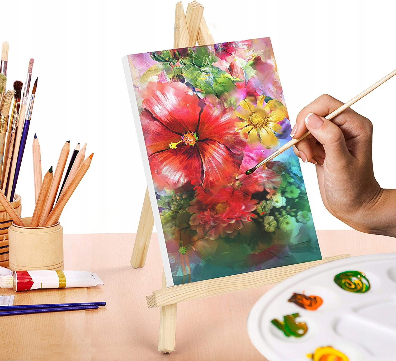 Базовый набор для рисования 22 шт. Холст + Краски + Мольберт + Кисти + Палитра