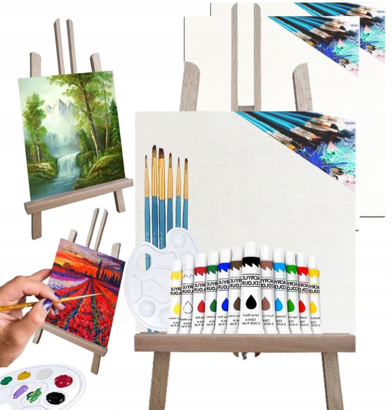НАБІР ДЛЯ ЖИВОПИСУ ПЕНЗЛІ МАЛЬКУЛЬТИ ФАРБИ ЖИВОПИС