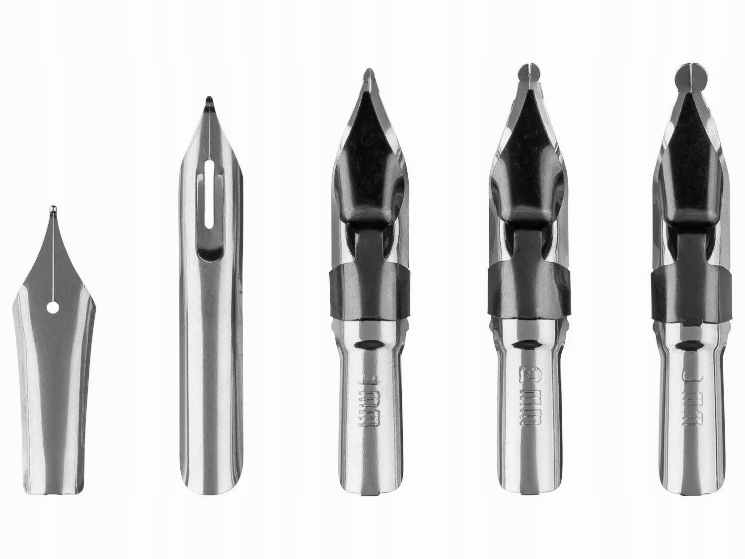 5 перьев из высококачественного металла обеспечивают разную толщину линий - от тонких букв до эффектных, широких штрихов.