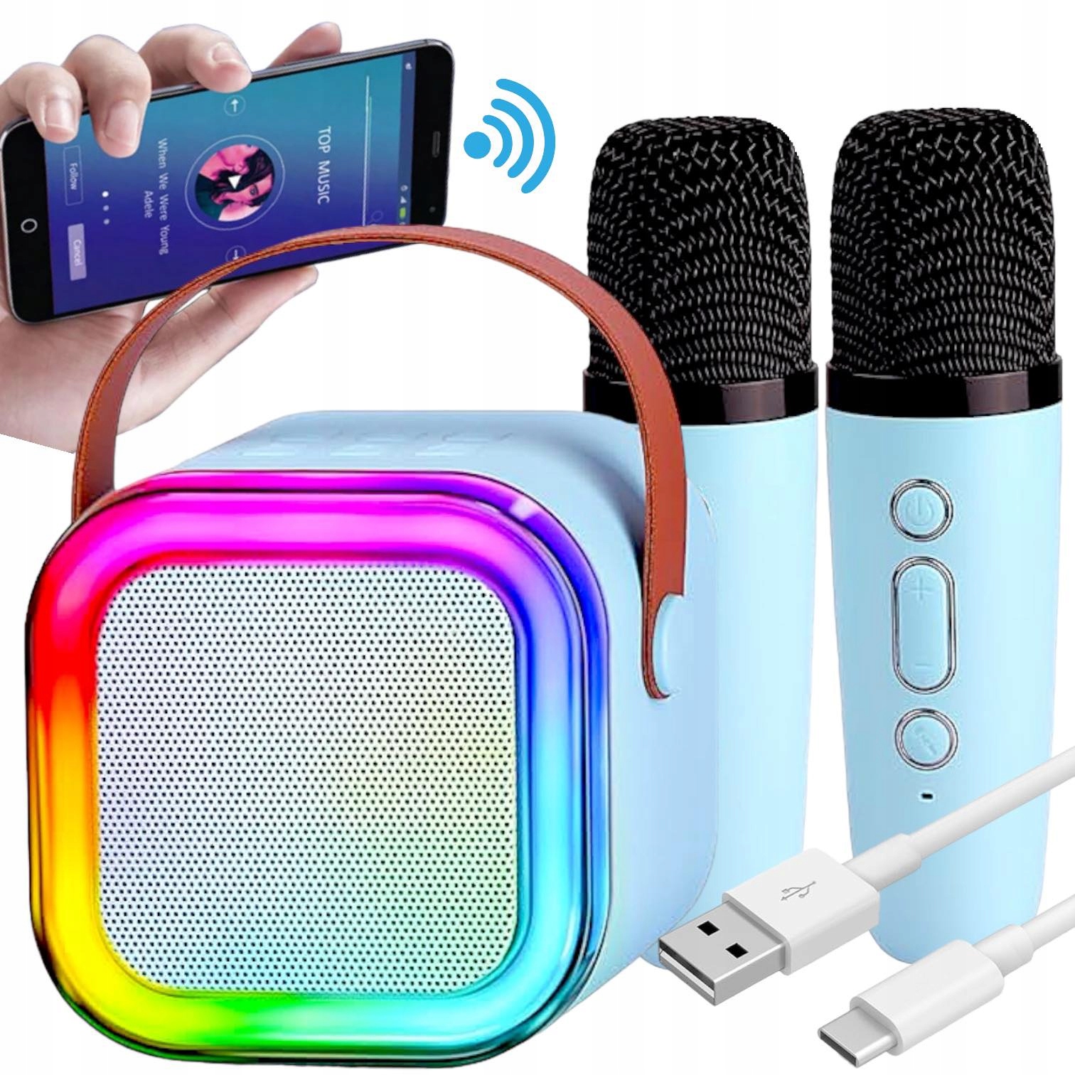 Набор для караоке: 2 микрофона + беспроводной динамик, светодиодная подсветка Bluetooth