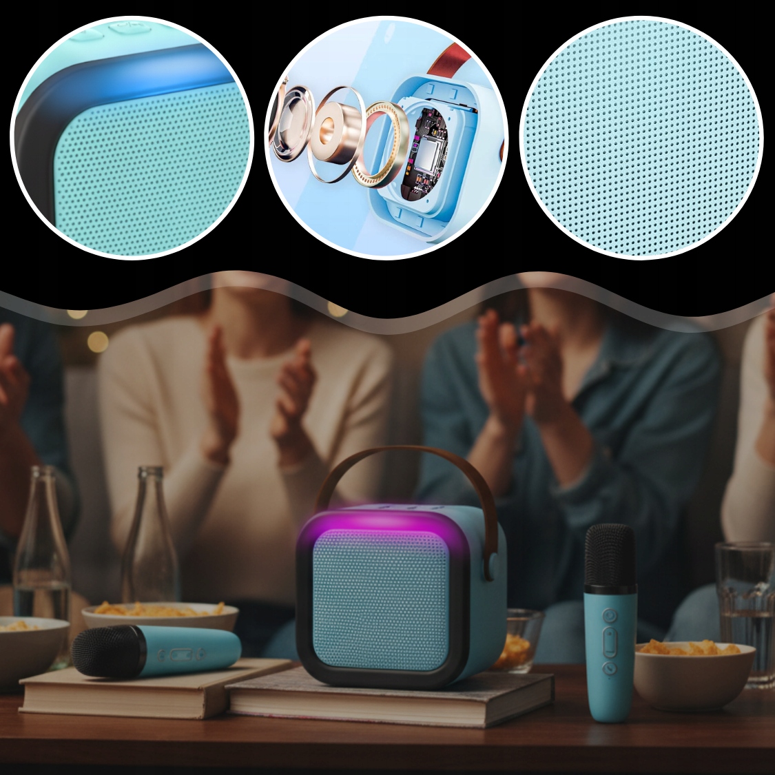 Портативный набор для караоке с синий динамик и два микрофона – залог успешного развлечения. Благодаря RGB подсветке и чистому звуку HiFi каждое караоке превратится в незабываемое шоу.