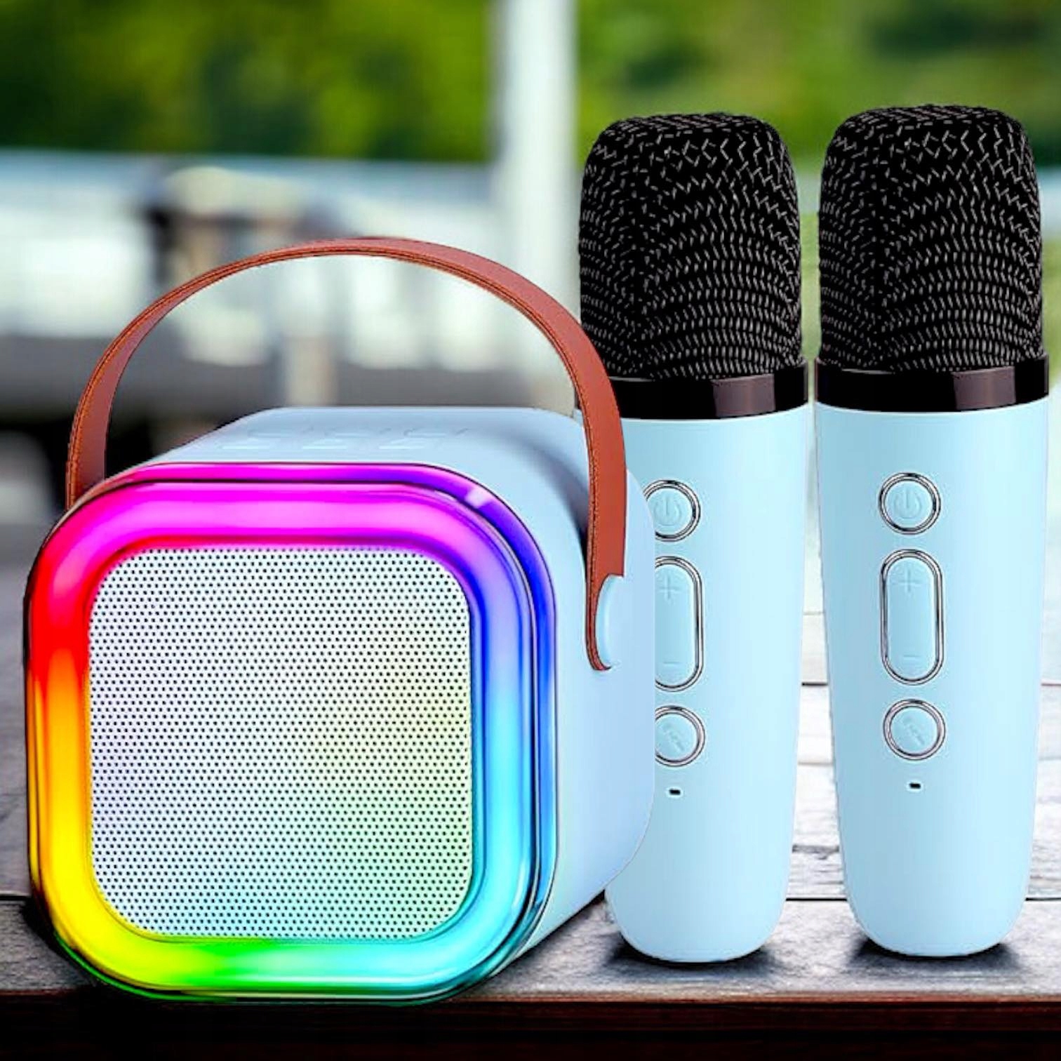 Набор для караоке: 2 микрофона + беспроводной динамик со светодиодной подсветкой BLUETOOTH (портативный), RGB