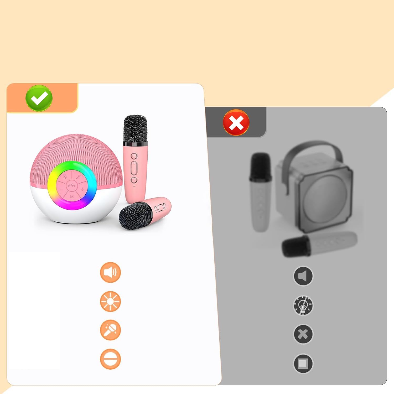 Этот мини-караоке обеспечивает кристально чистый звук, благодаря которому вы почувствуете себя так, словно находитесь на сцене! Высококачественный звук устраняет раздражающую обратную связь и обеспечивает наилучшее звучание вашего голоса. Кроме того, независимые регуляторы вокала, эха и громкости позволяют точно настроить звук для достижения превосходного качества. Независимо от того, будете ли вы включать любимые песни во время караоке-вечера или использовать его в качестве портативной колонки, этот детский караоке-аппарат обязательно произведет впечатление.