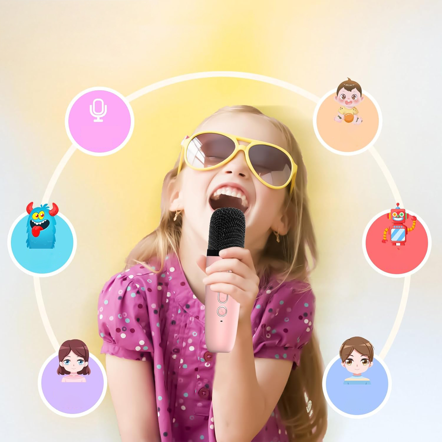 Этот легкий и портативный детский микрофон создан с учетом вдохновения! Удобная форма шара идеально подходит для маленьких ручек и позволяет им брать музыку с собой в парк, на игру или даже в отпуск. Издает удивительные звуки во всех направлениях! Отличные игрушки для маленьких девочек. Подходит для детей и взрослых в возрасте от 3 до 12 лет.