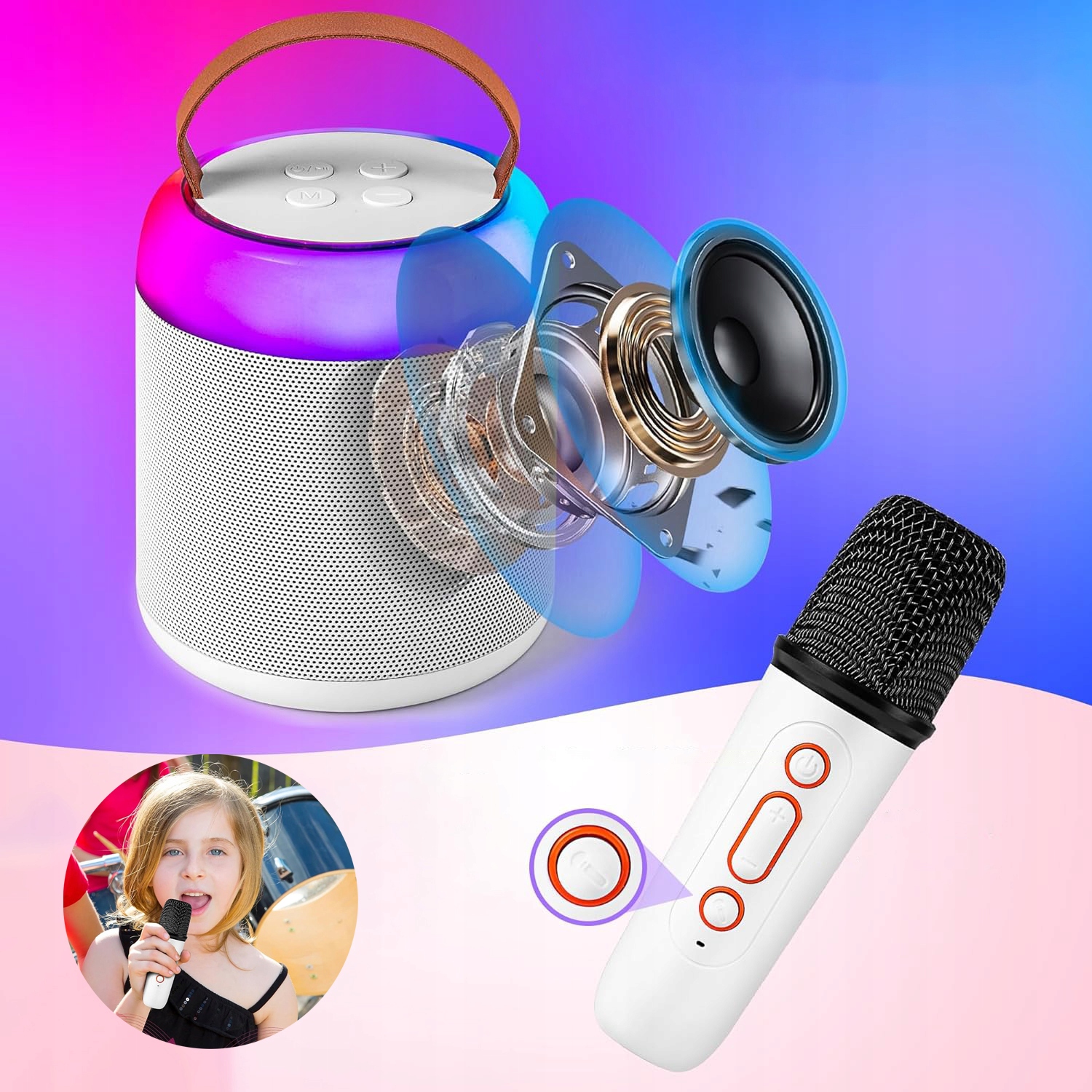 - Портативная Bluetooth-колонка и 2 беспроводных микрофона оснащены эффективными аудиопреобразователями и современными процессорами цифровых сигналов, что делает звук более четким и четким. подарит вам незабываемые впечатления от пения.