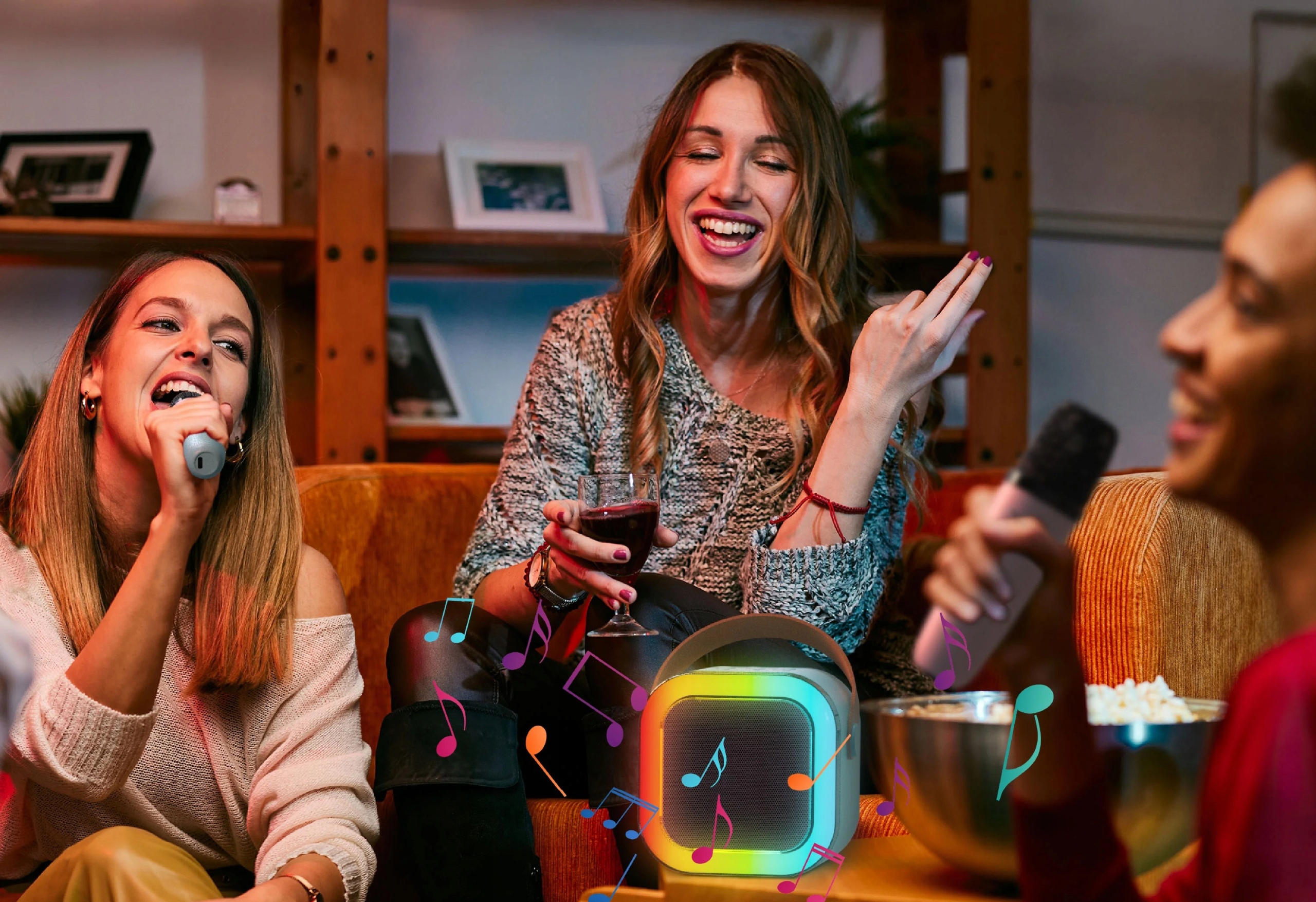 Благодаря караоке-набору вы сможете петь в любое время и в любом месте — беспроводные микрофоны позволят развлекаться несколько часов без необходимости подключения к электросети.