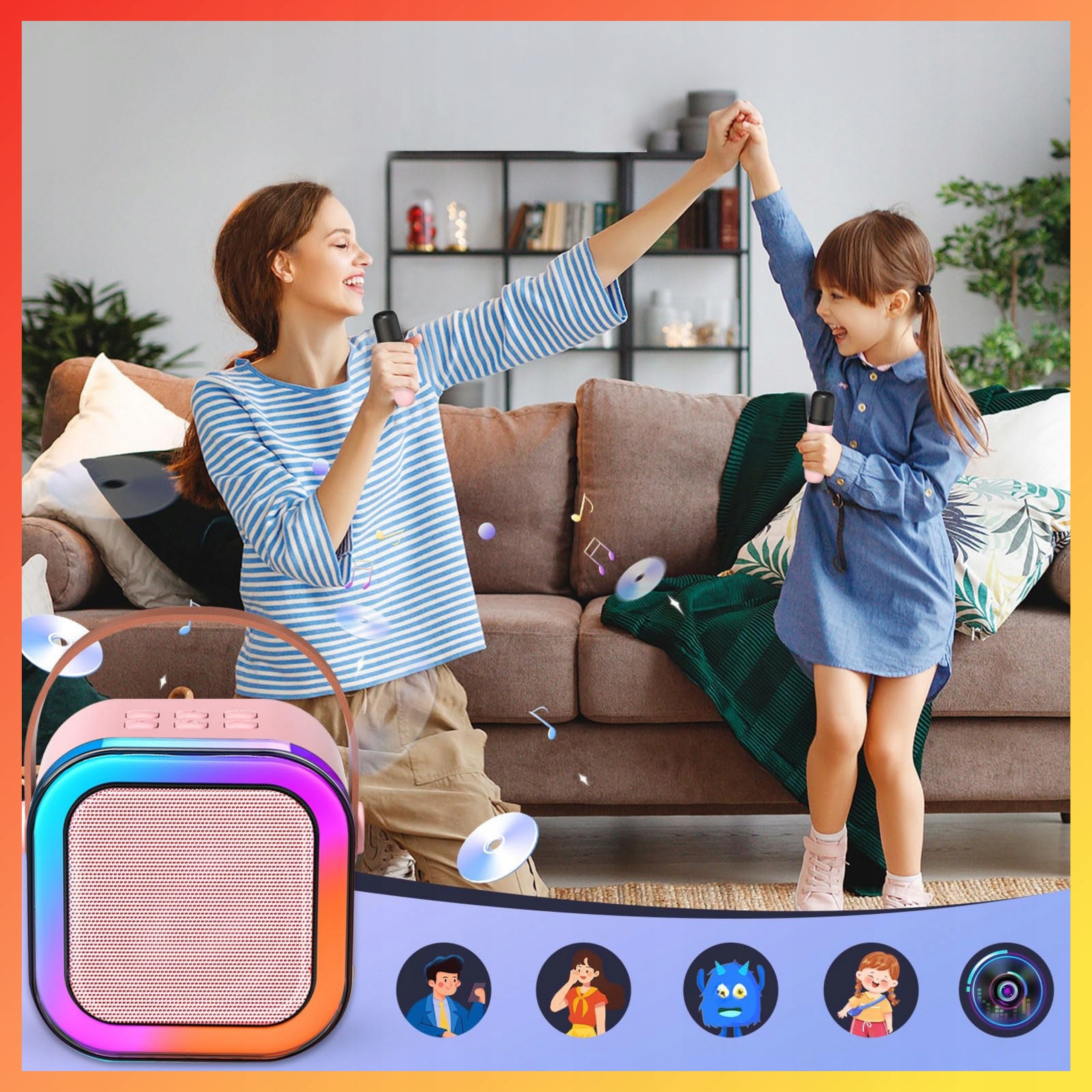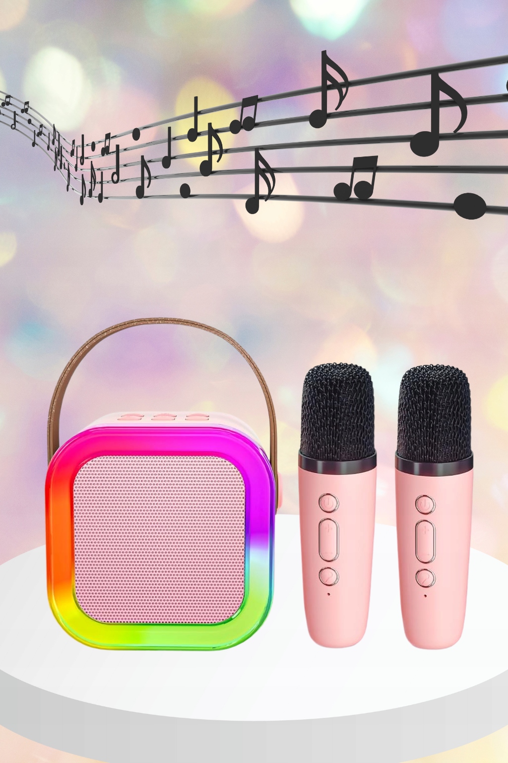 НАБОР ДЛЯ КАРАОКЕ, ДИНАМИК BLUETOOTH, СВЕТОДИОДНАЯ RGB-подсветка + 2 ПОРТАТИВНЫХ МИКРОФОНА