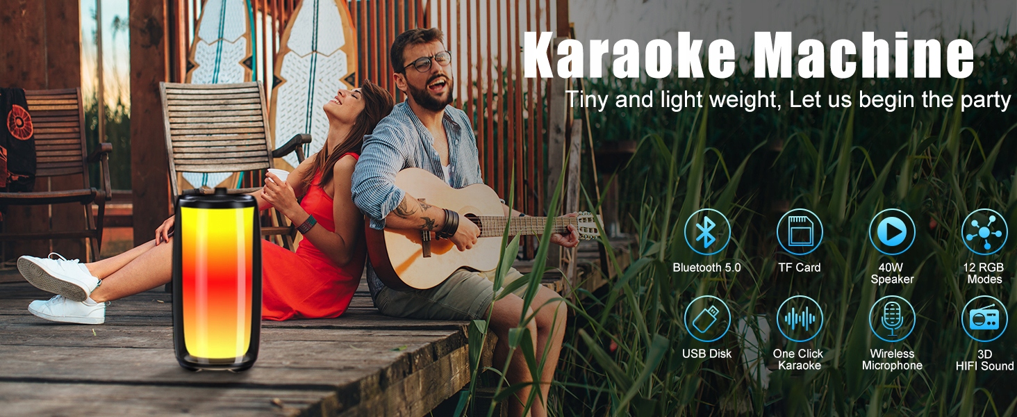 Караоке-машина MAIKELU, караоке с 2 микрофонами, отмена исходного звука одним щелчком мыши, динамик 20 Вт, 11 режимов RGB Ambient, караоке-машина для взрослых, поддержка Bluetooth/USB/TF/AUX
