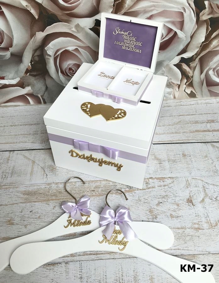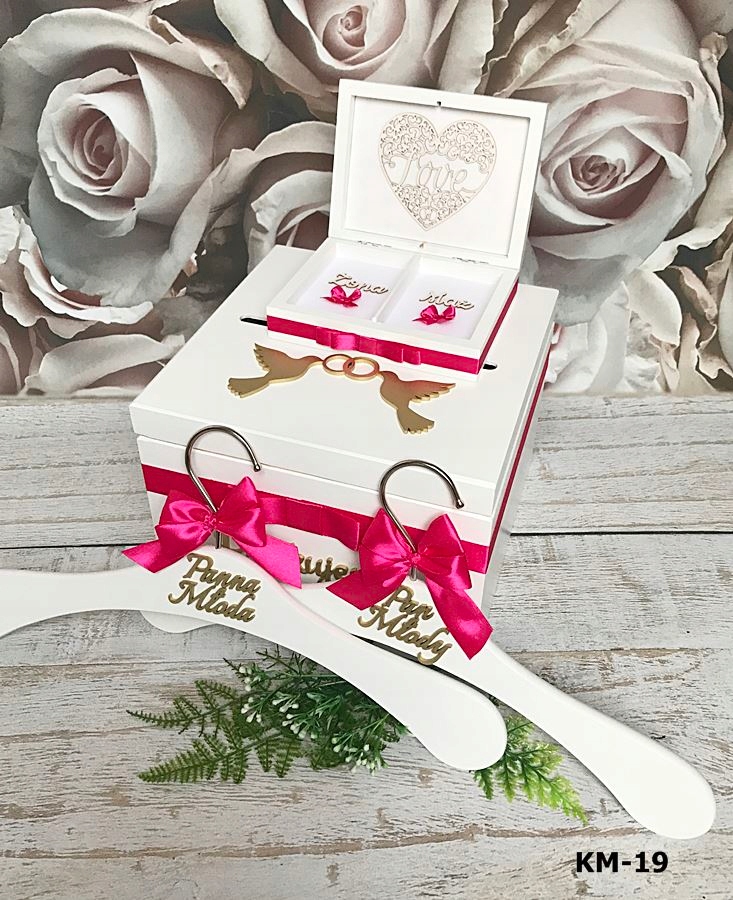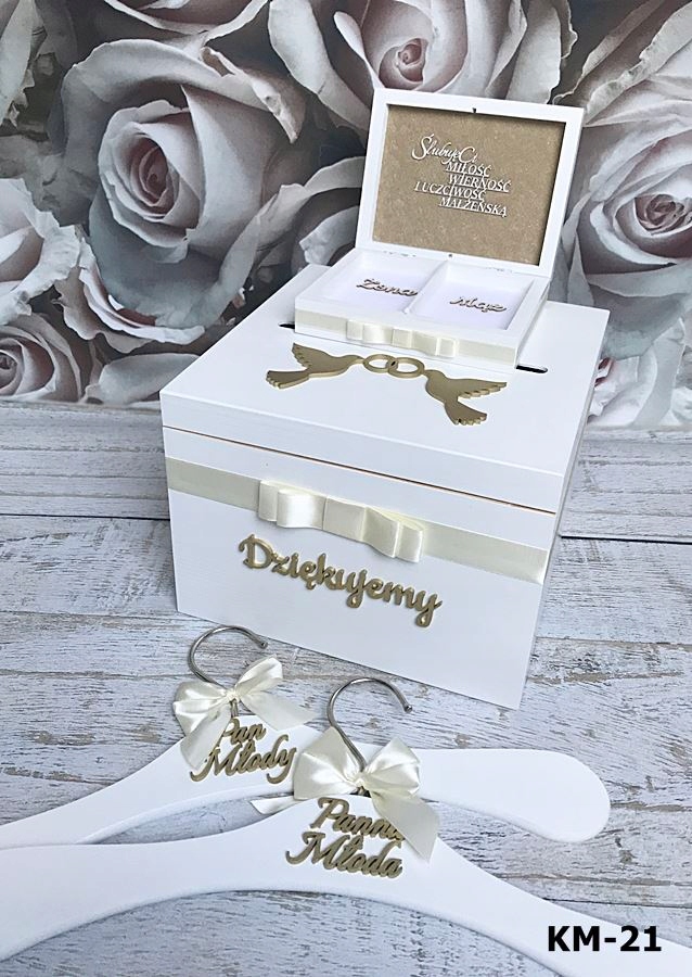 На внешнюю сторону коробки наклеивается объемный декор в виде голубя или сердца (лаковый декор золото или серебро), в зависимости от выбранной модели.