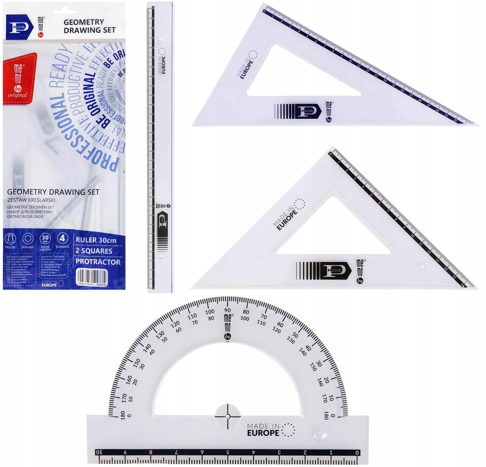 НАБІР ДЛЯ КРЕСЛЕННЯ MEMOBE PRATEL ЛІНІЙКА 30 см