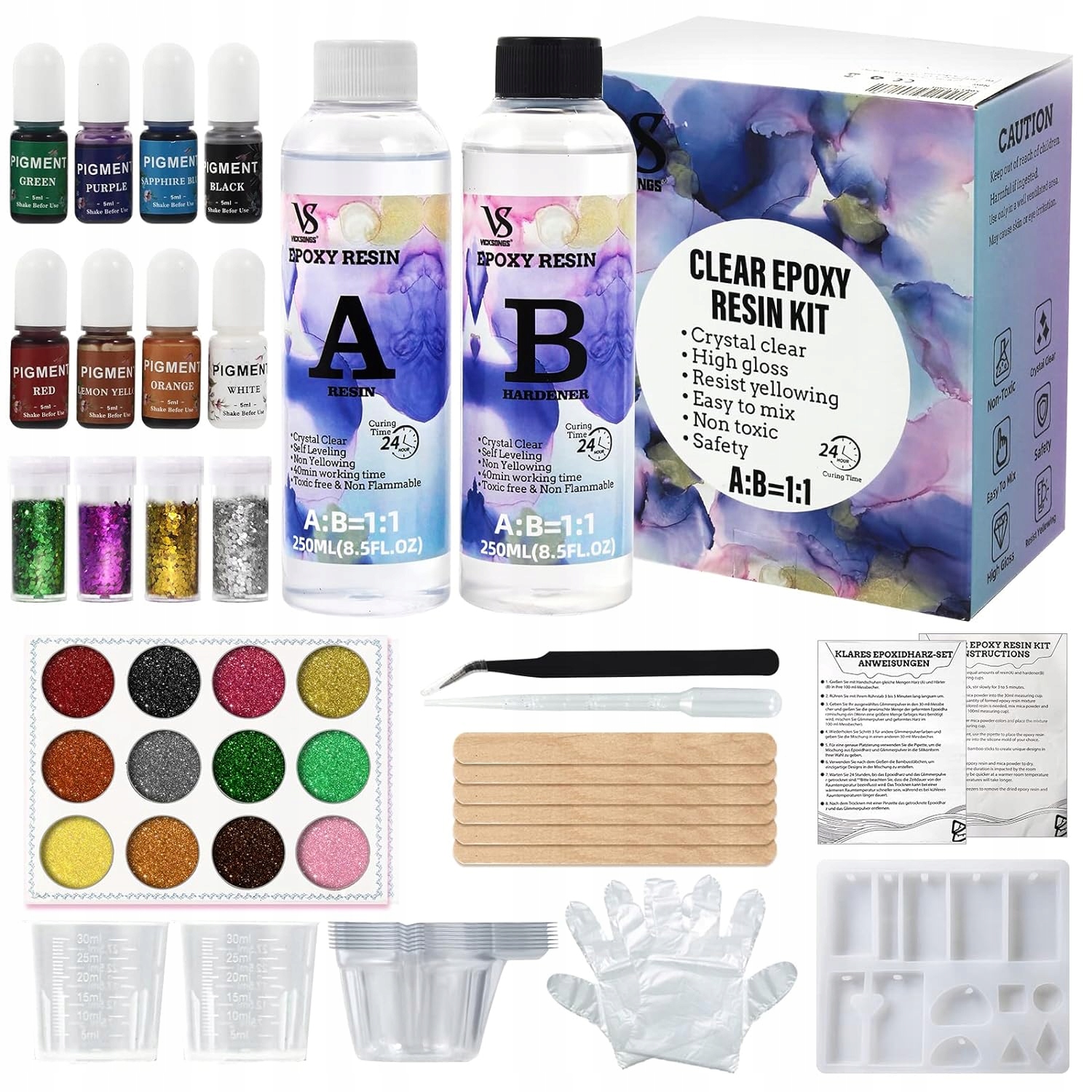 ✅ НАБОР ДЛЯ ЛИТЬЯ ЭПОКСИДНОЙ СМОЛЫ ФОРМЫ КРАСИТЕЛИ И АКСЕССУАРЫ 500 МЛ