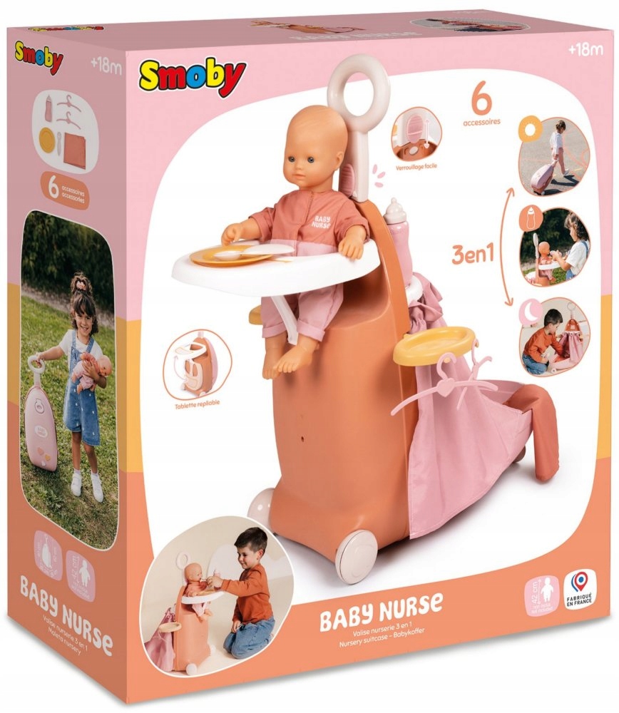 МНОГОФУНКЦИОНАЛЬНЫЙ ЧЕМОДАН SMOBY Baby Nurse — это оригинальный набор для ухода, сочетающий в себе функциональность, эстетику и удовольствие. В этом компактном чемодане разместился целый центр по уходу за куклами!