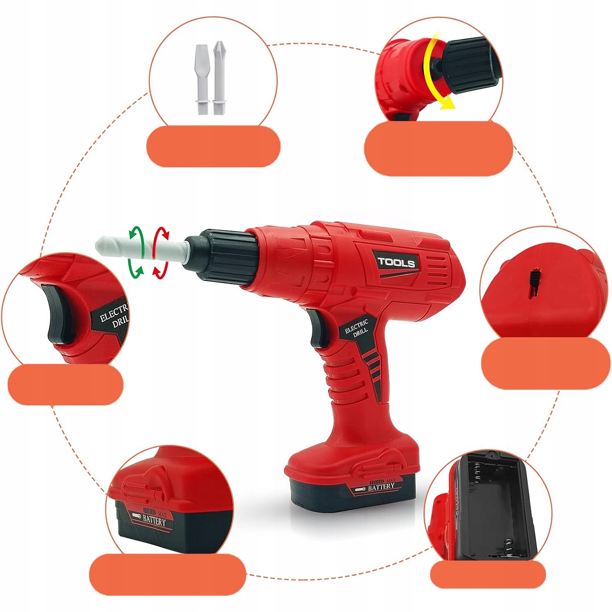 Набор инструментов 56 шт. — это полный набор «Сделай сам», созданный для детей от 3 лет. Реалистичная дрель, различные аксессуары и практичная коробка гарантируют долгие часы творческого веселья и обучения на основе опыта