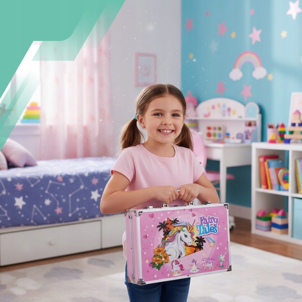 ⭐НАБОР ДЛЯ ДЕТЕЙ ХУДОЖЕСТВЕННЫЙ ПЛАСТИКОВЫЙ ЧЕМОДАН 145 штук единорог