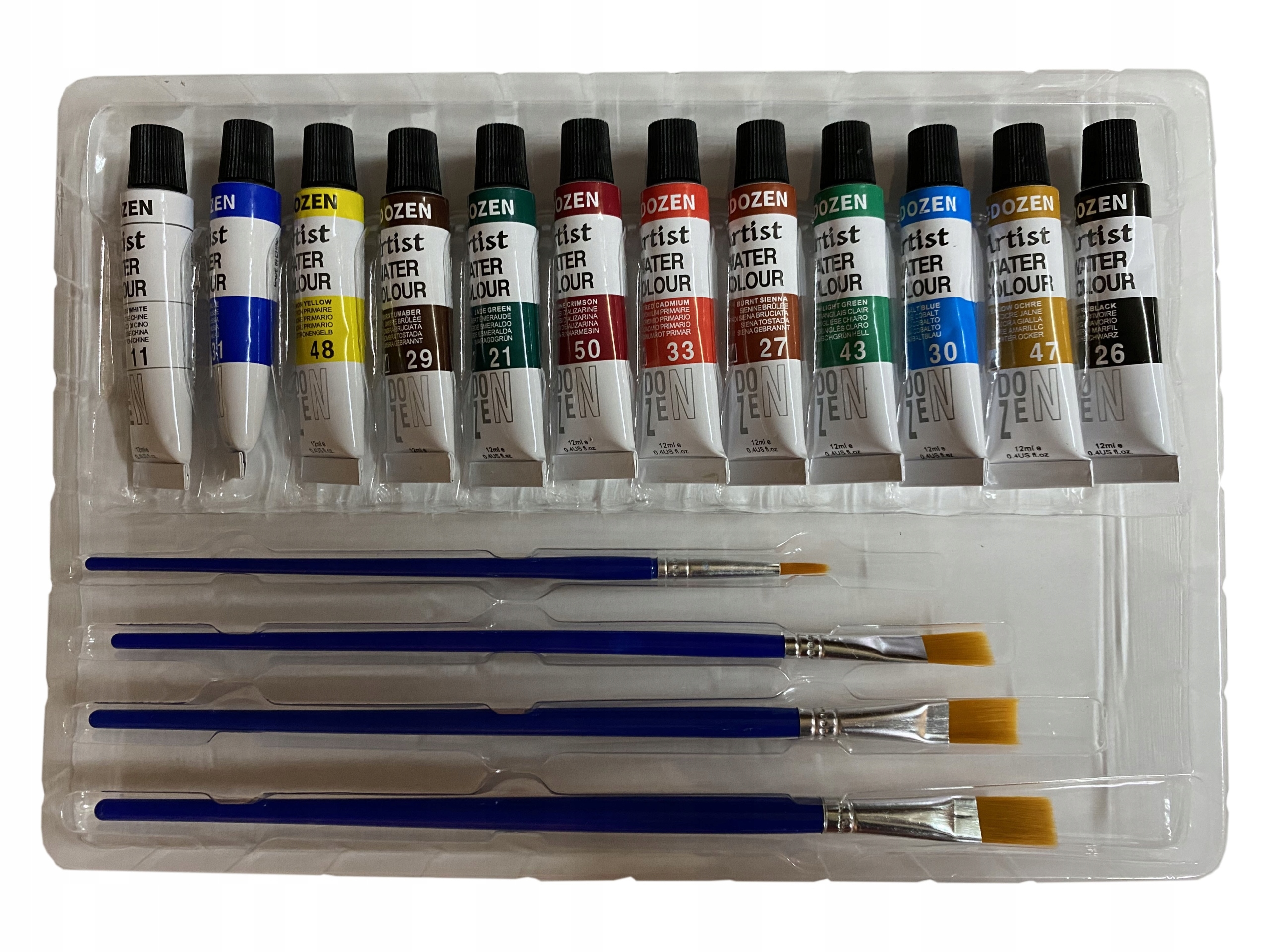 Акварельные краски в тюбике по 12 цветов с кистями «Дюжина»