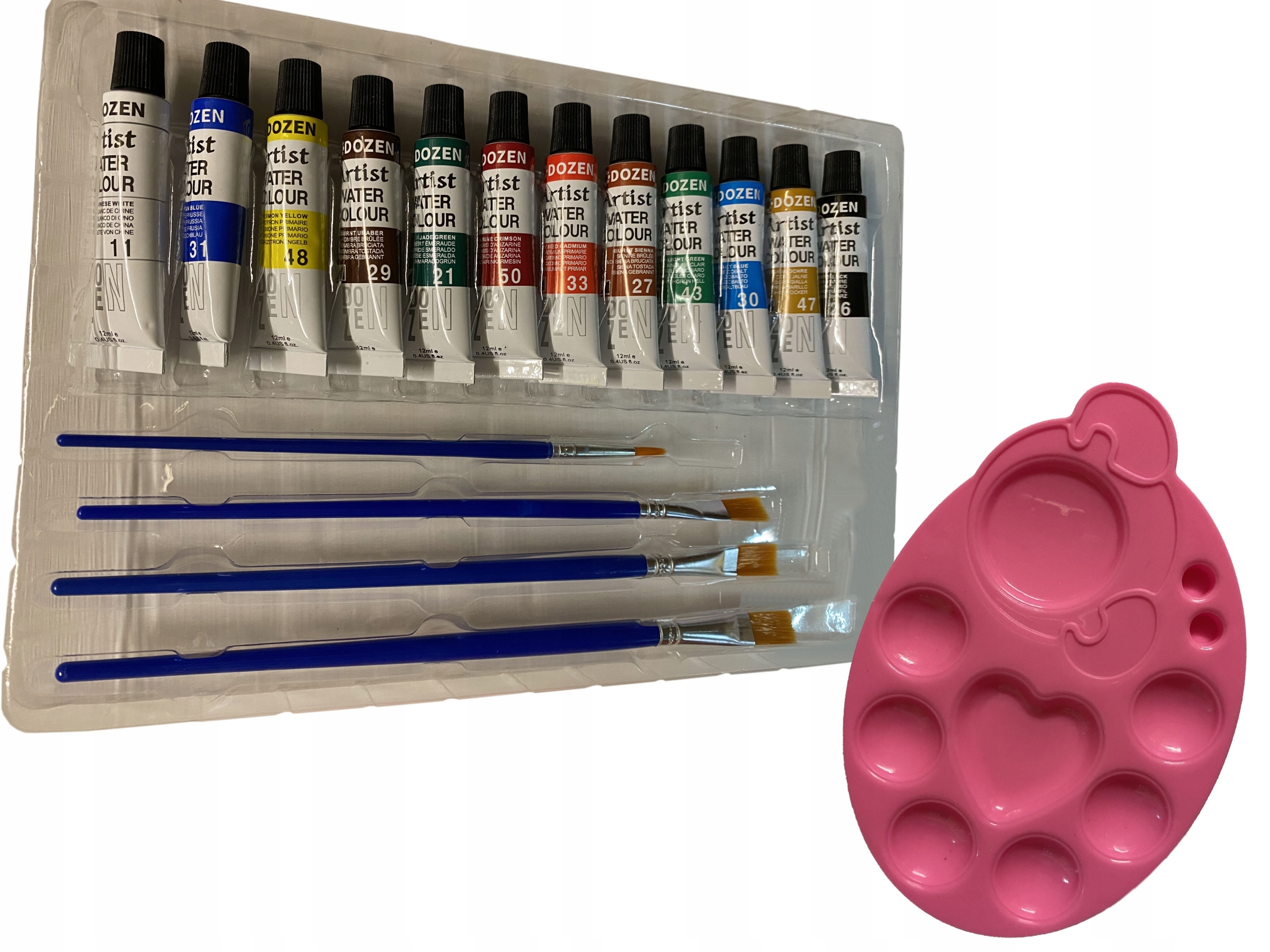 КРАСКИ ДЛЯ ХУДОЖНИКОВ 12 ЦВЕТОВ В НАБОРЕ С КИСТЬЯМИ И ПАЛИТРОЙ