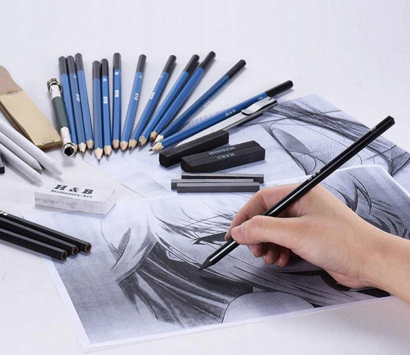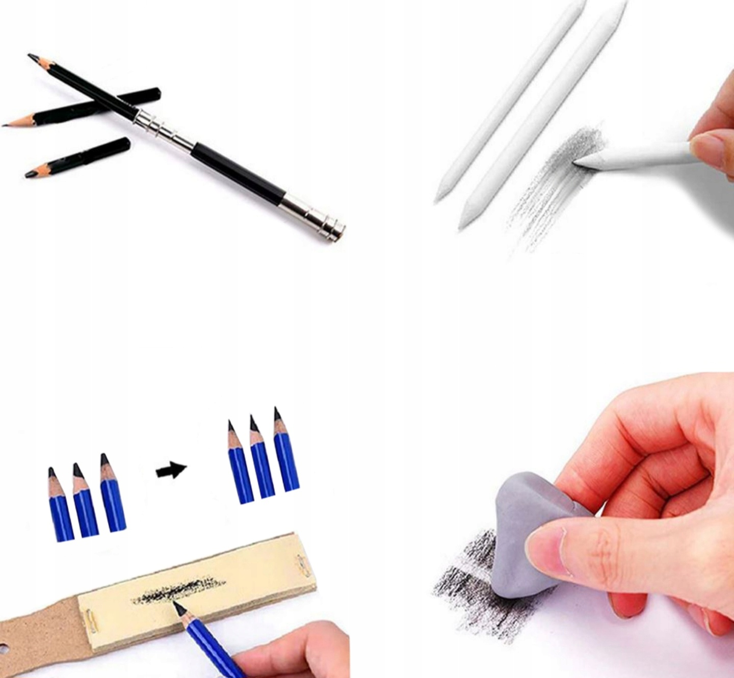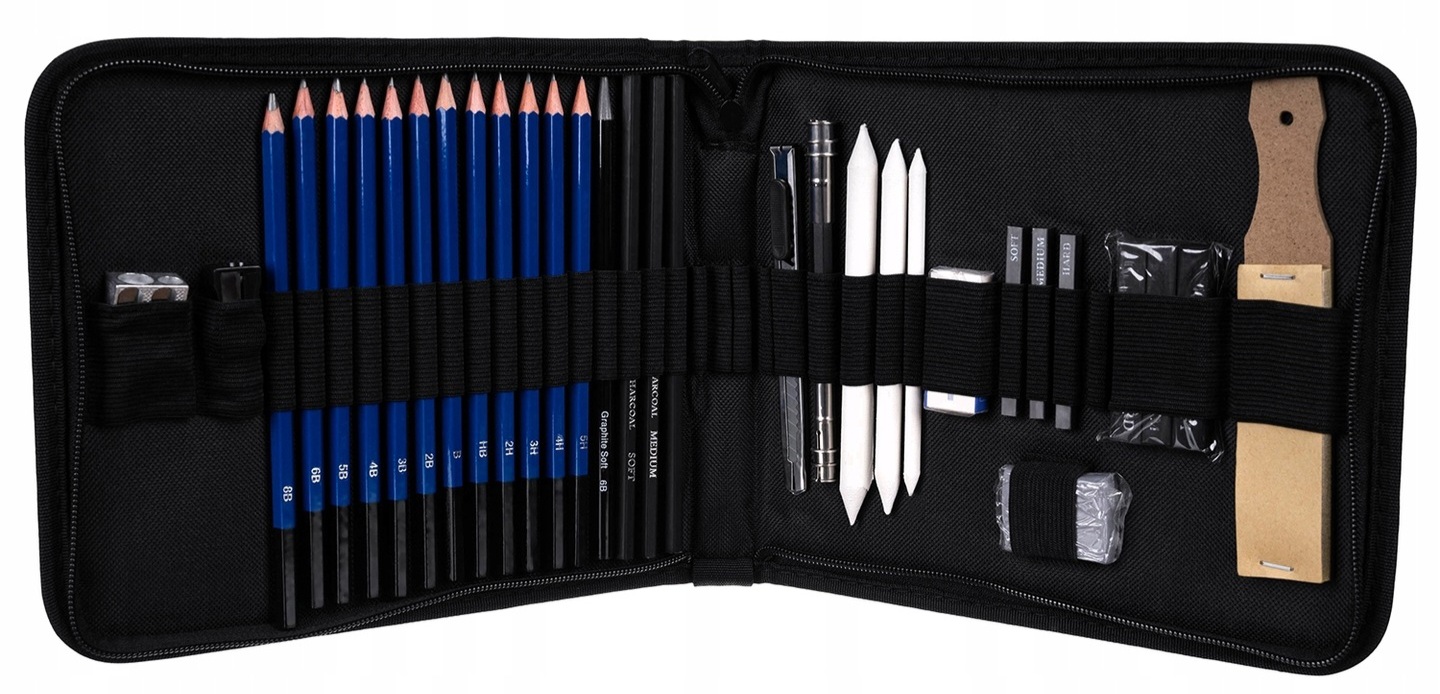 - 12 карандашей для рисования (2H / 3H / 4H) / 5H / HB / B / B2 / B3 / B4 / B5 / B6 / B8)