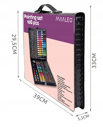 168 ЭЛЕМЕНТОВ – используется огромный выбор: 24 мелка, 24 маркера, 48 масляных пастелей, 48 свечных пастелей, 12 акварельных красок, точилка, клей, корректор, карандаш, ластик, Листы бумаги формата А4 мы с легкостью создадим самые изысканные, креативные и оригинальные работы.