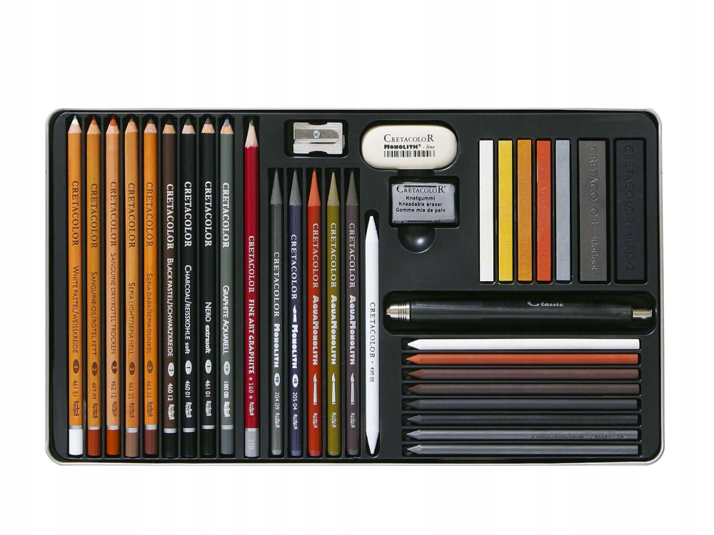- Тщательно отобранный Набор для рисования Ultimo 35, доступный в нашем магазине, представляет собой профессиональный продукт для художников, предназначенный для создания эскизов и рисунков. В нем собраны избранные аксессуары для рисования и черчения, и все это помещено в качественный, прочный и устойчивый к повреждениям металлический ящик. В набор для рисования Ultimo входят: карандаши и графиты, графиты (акварельные, монолитные, водорастворимые монолитные), водные карандаши, серый и коричневый мелки, графитовая палочка, натуральный уголь, хлебный ластик, ластик Монолих, мудрец, точилка и булавка. обрабатывать. Приобретая набор для рисования в нашем магазине, вы гарантированно приобретаете продукт высочайшего качества, которым охотно пользуются художники со всей страны. Мы предлагаем быструю доставку и привлекательные цены.