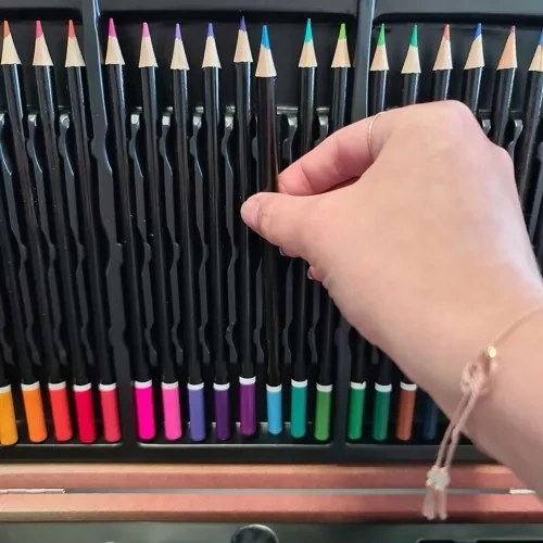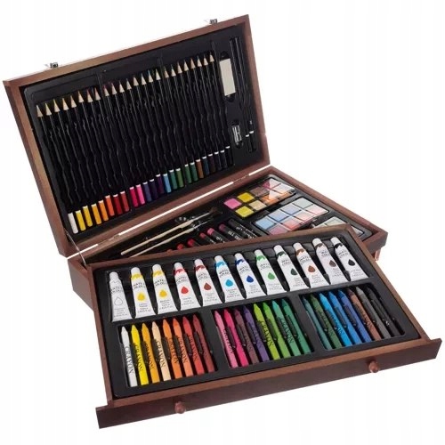 - Легкий доступ к отдельным элементам - набор для рисования имеет специальные отсеки, которые позволяют быстрый и простой доступ к отдельным элементам, предоставляя им защиту и обслуживание порядка . Деревянный: Да; Количество элементов: 129; Размеры: 23,5 x 38 x 8 см; Вес: 2,561 кг; Вес в упаковке: 3,284 кг.