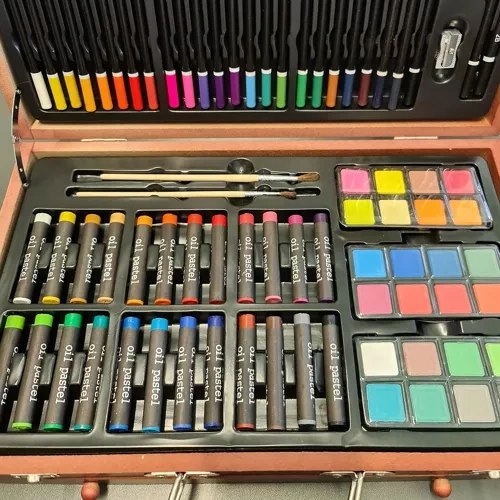 - Много элементов - картина, установленная в чемодане, имеет много элементов: 24 карандаша; 12 акварельных красок; 24 масляных пастели; 24 восковых карандаша; 2 карандаша HB и 2B; 1 ПК кожи; 1 ПК ластиков; 24 акварели на поддоне; 2X Sketchbook (A4 и A5); 12 кистей; 1 поддоны; 1x Case