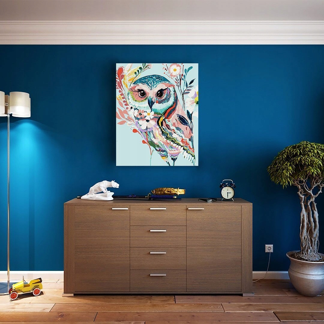 Картину по номерам «Цветочная сова» можно приобрести для себя или в подарок