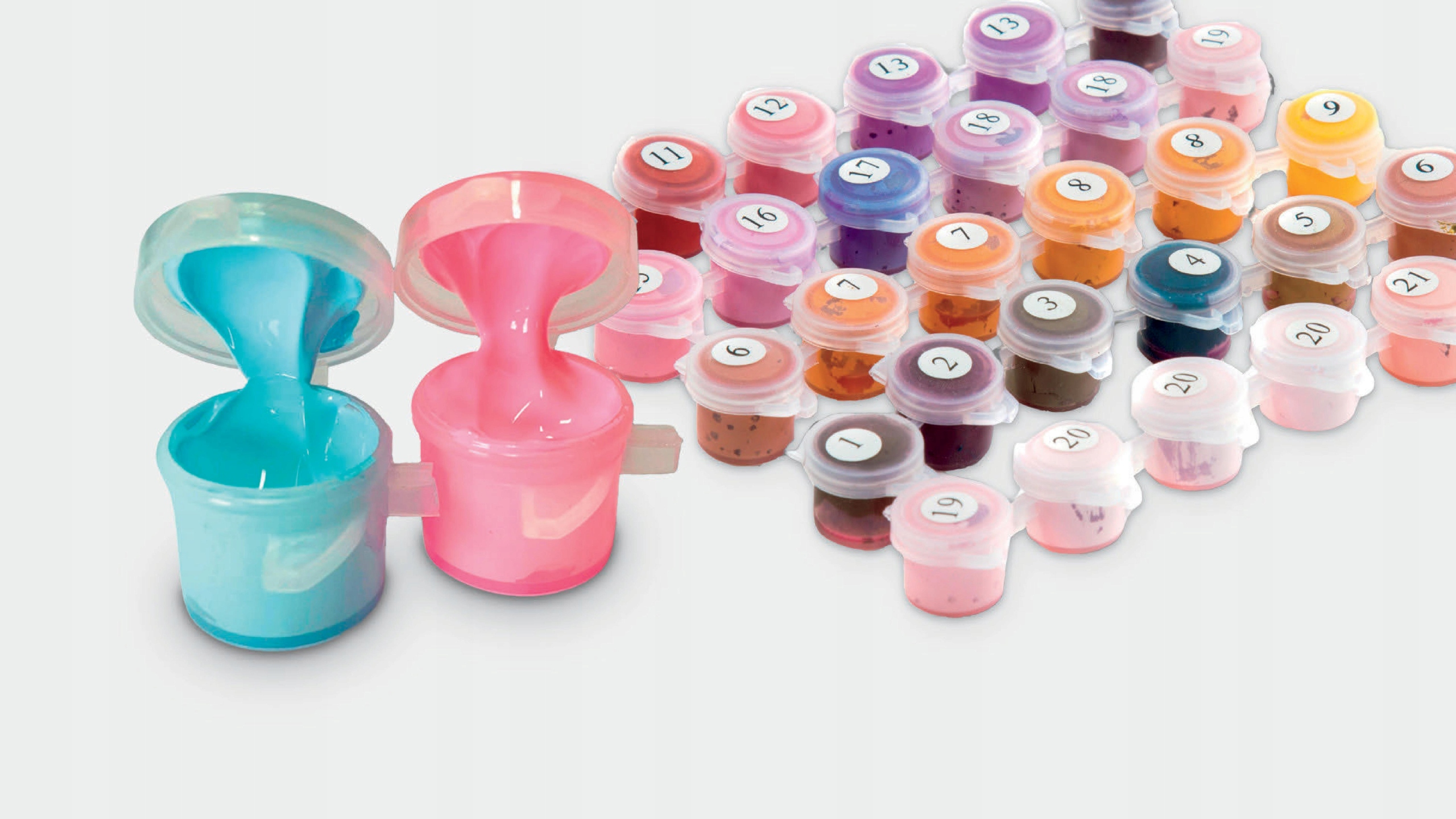 Все баночки упакованы в специальную вакуумную упаковку, благодаря которой они сохраняют свои свойства в течение длительного времени. много времени. Количество цветов в наборе красок зависит от размера и сложности изображения
