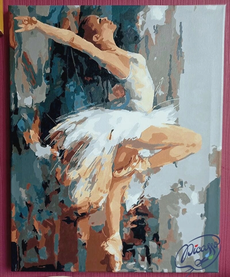 На холсте есть зоны с напечатанными на них номерами, которые необходимо закрасить краской с числовым присвоением.