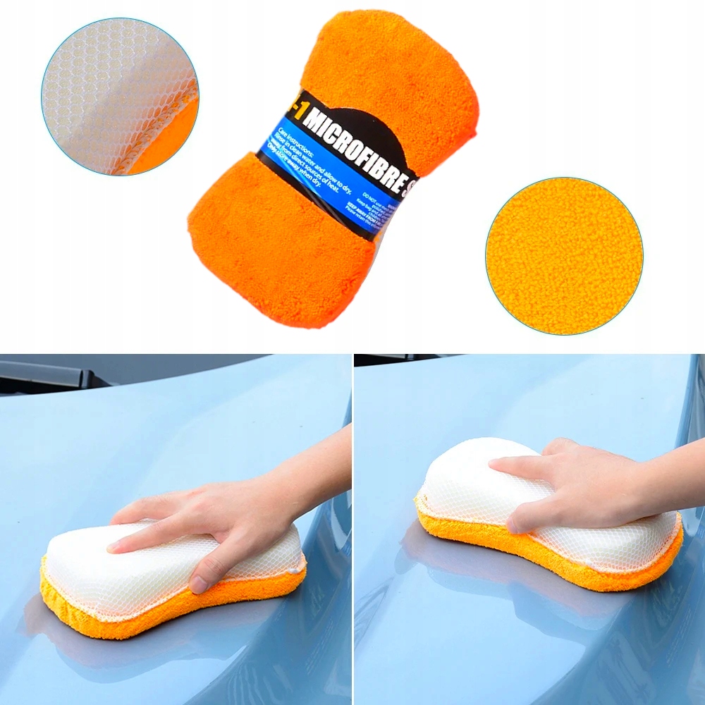 - Жесткая сторона (сетка на губке) позволяет удалить более крупные загрязнения перед полировкой. b> li>