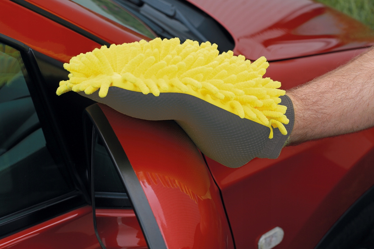 Перчатка 2в1 подходит для всех поверхностей и отлично подходит для мытья кузова автомобиля. Используйте супервпитывающую желтую сторону из микрофибры, чтобы удалить всю грязь и пыль с вашего автомобиля, а прочную тканую серую сторону — для удаления стойких следов и грязи.