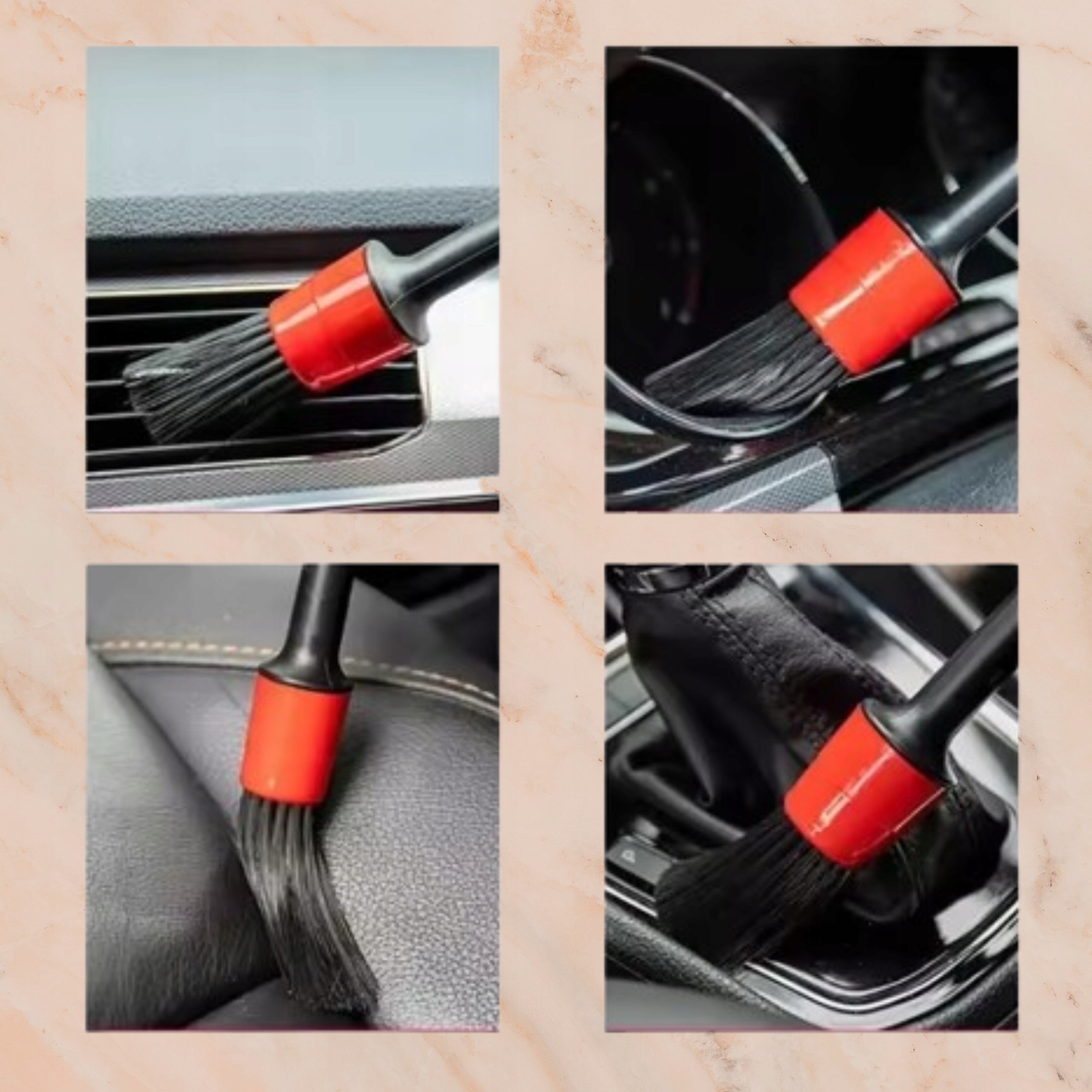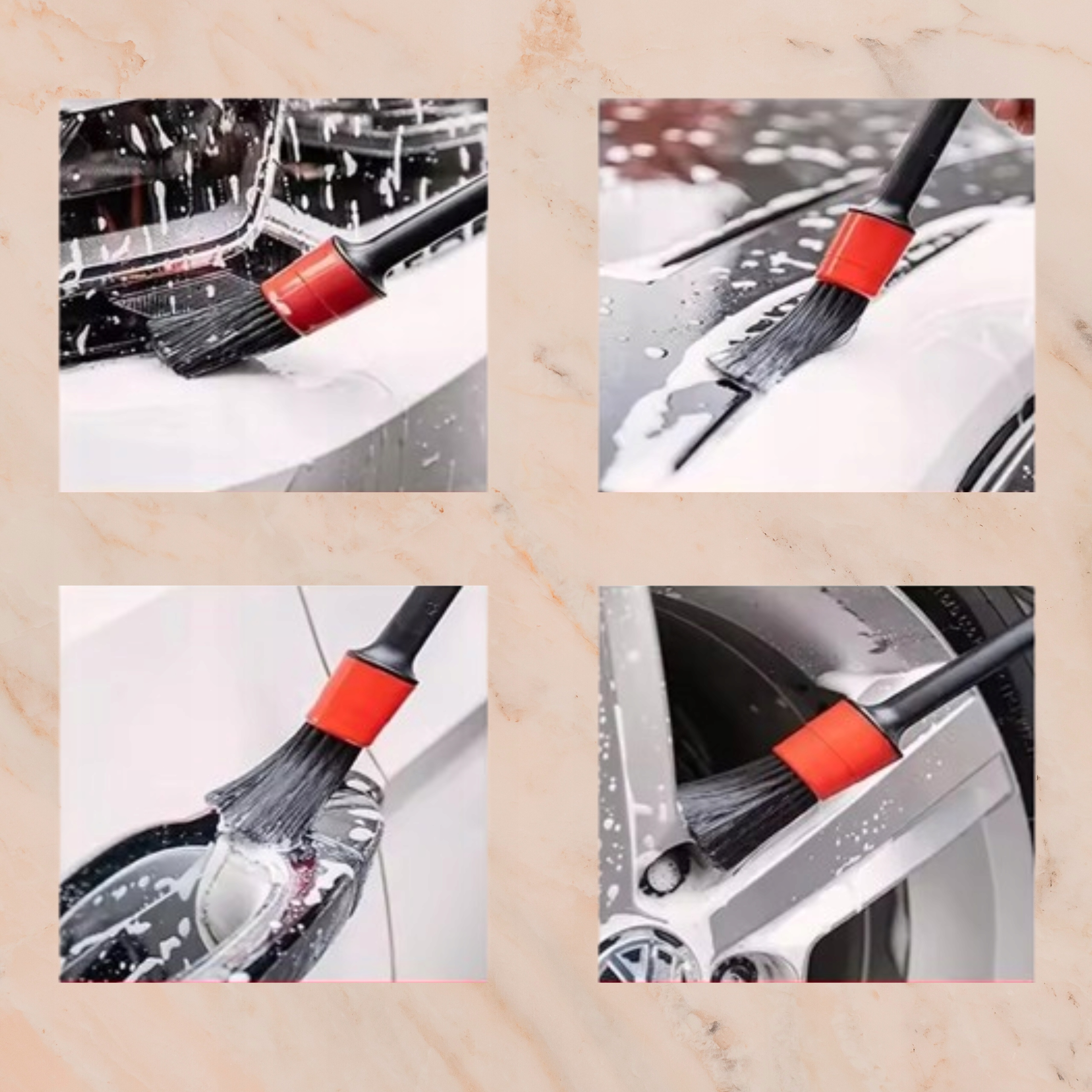 - Точные детали: Кисти для детейлинга различных размеров идеально подходят для очистки труднодоступных мест. например, вентиляционные решетки, диски или промежутки между элементами интерьера.