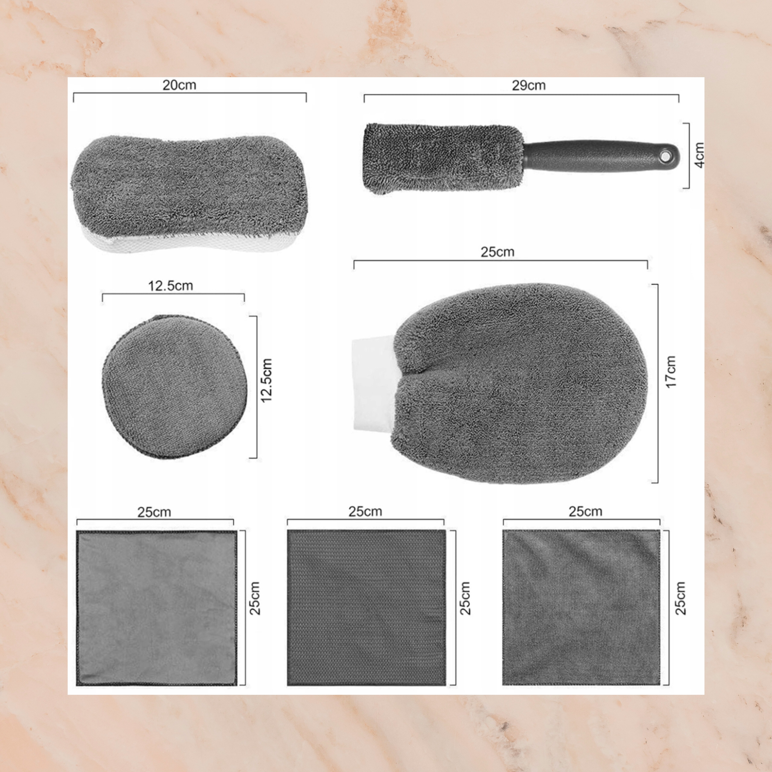 Просматривая «Набір для миття автомобіля, щітка для чищення автомобіля, рукавичка для деталізації автомобіля + Щітки для миття та чищення автомобілів, набір 5 щіток», вы можете быть уверены, что данный товар из каталога «Моющие губки» будет доставлен из Польши и проверен на целостность. В цене товара, указанной на сайте, учтена доставка из Польши. Внимание!!! Товары для Евросоюза, согласно законодательству стран Евросоюза, могут отличаться упаковкой или наполнением.