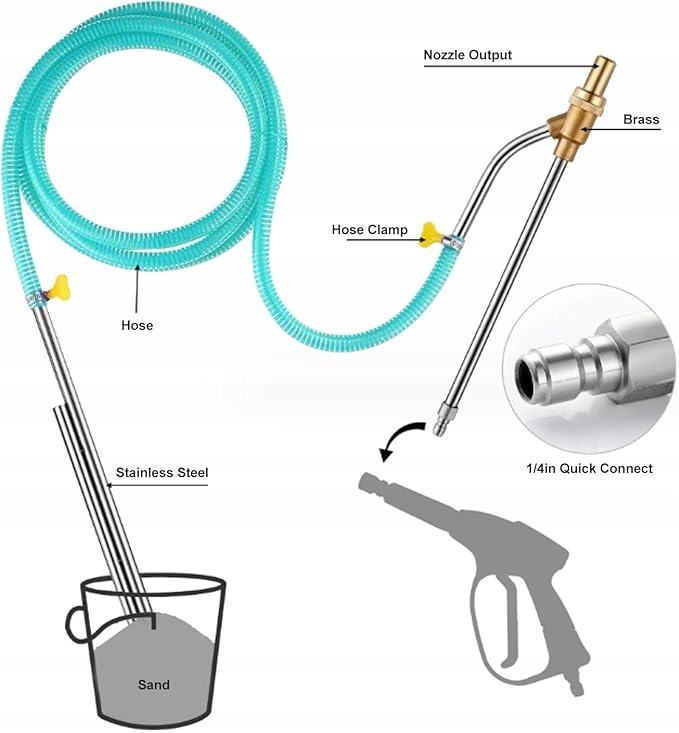 Набор для песчаной кишки для омывания давления в основном используется для удаления ржавчины, граффити, горящих красок и жира и идеально подходит для домашней и фабричной абразивной очистки!