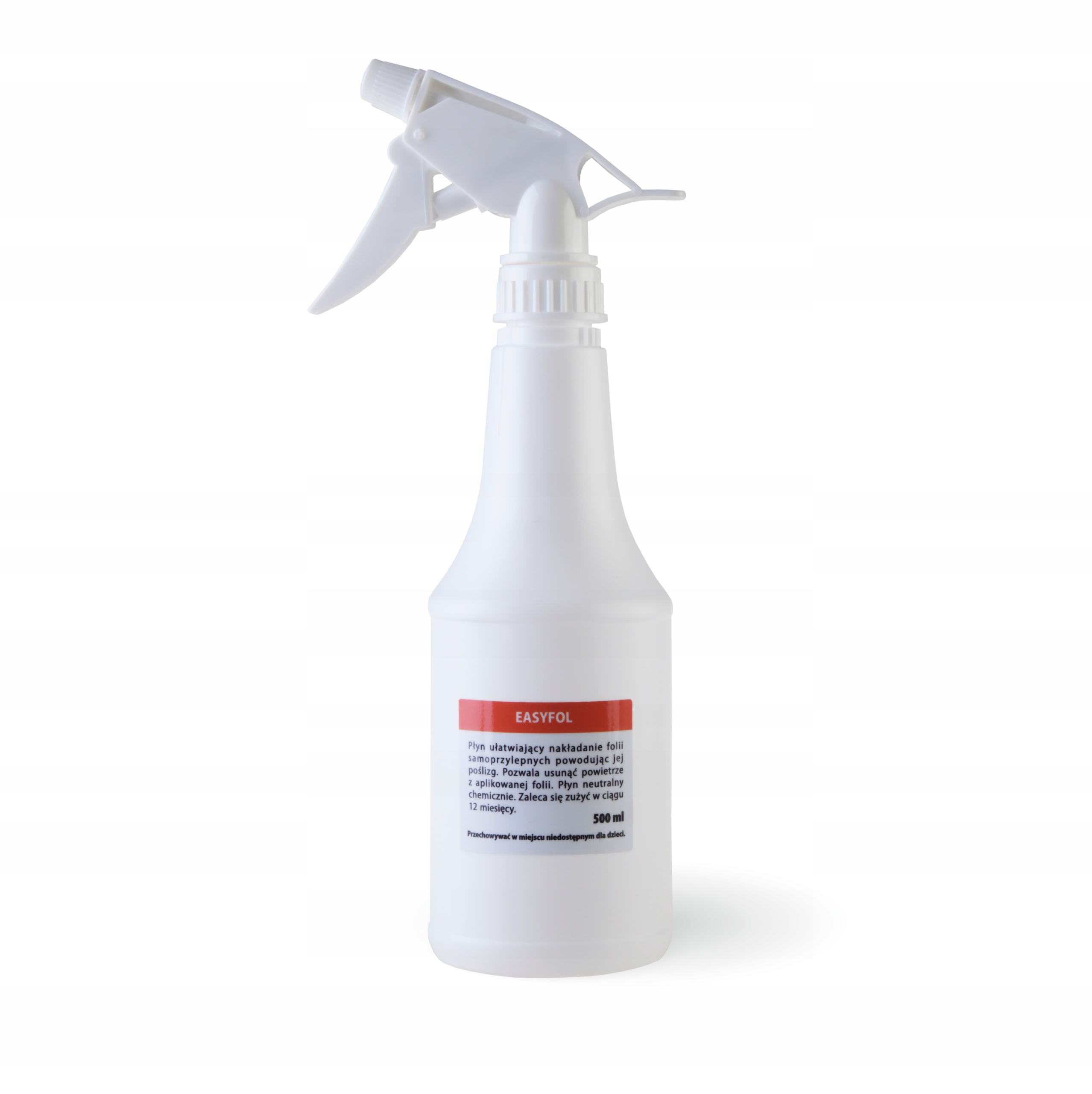 - Easyfol Жидкость, облегчающая наклеивание самоклеящихся пленок, вызывающая их скольжение. Он позволяет удалить воздух из нанесенной фольги. Химически нейтральная жидкость. Флакон с аппликатором-спрей 0,5 л.