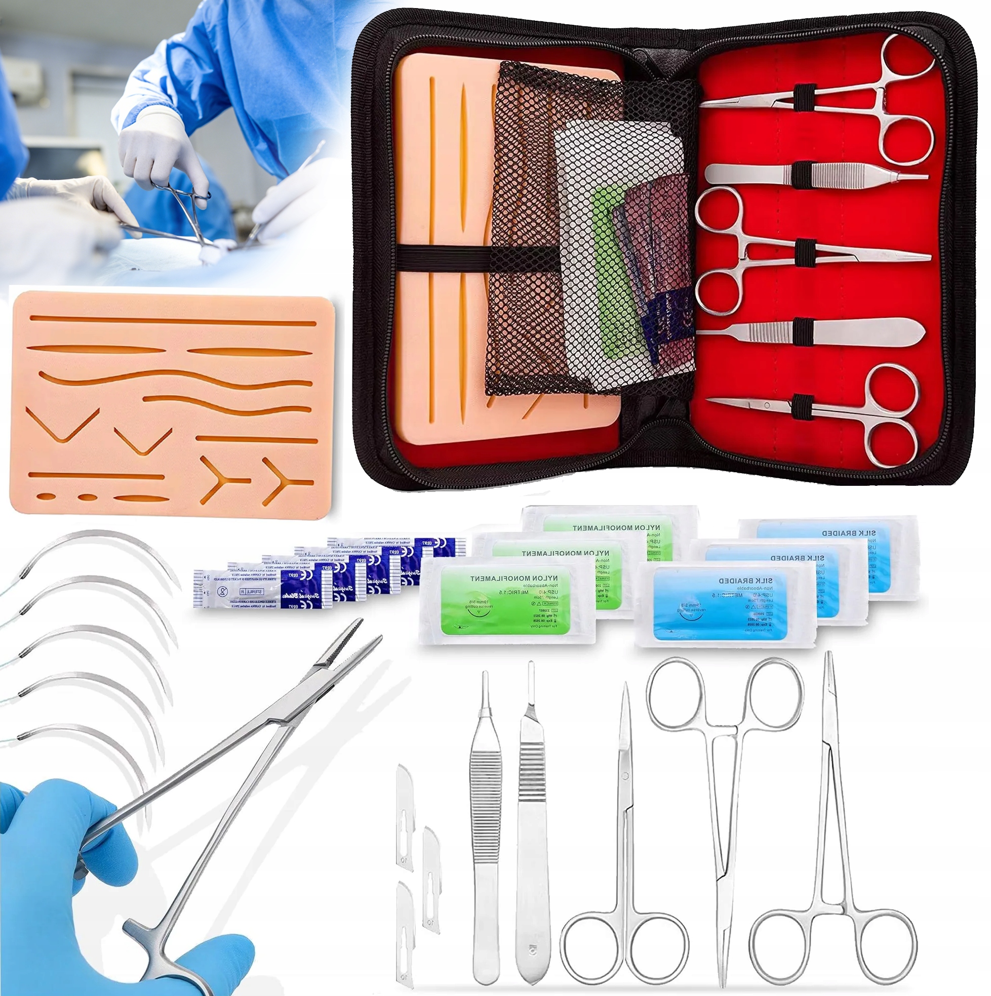 ✅Полный набор для обучения хирургическому наложению швов, идеально подходящий для студентов-медиков и ветеринаров. Содержит профессиональные инструменты из хирургической нержавеющей стали и реалистичный скинпад для упражнений. Безопасный, прочный и многоразовый.