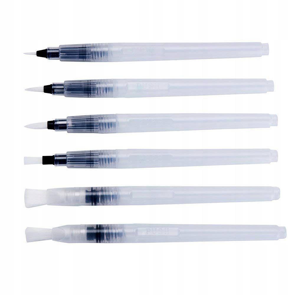 В наборе 6 различных кистей/ручек/маркеров, не содержащих чернил. Вы можете легко сделать чернила самостоятельно, используя воду и красители. Вы также можете купить его в Интернете или приготовить по многим общедоступным рецептам.