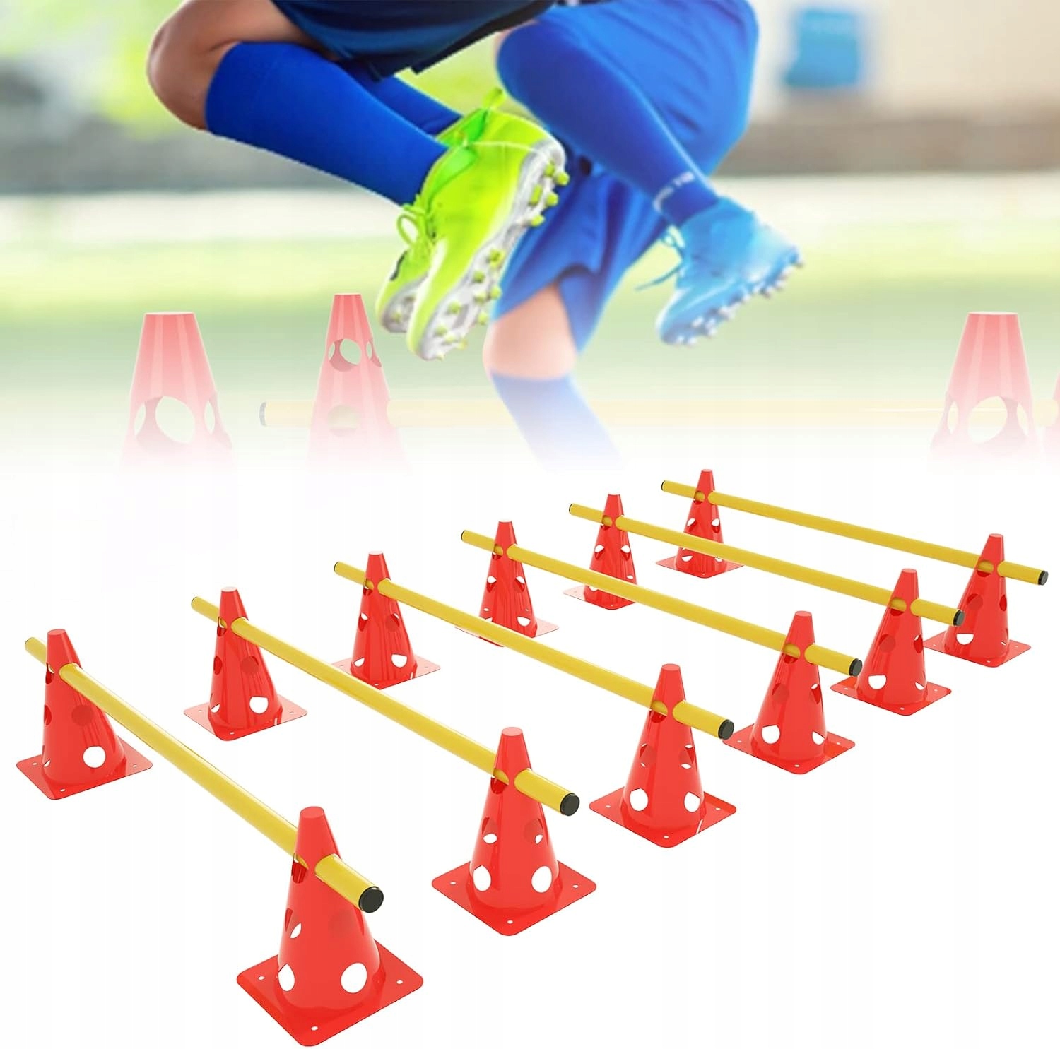 Комплект подходит для использования в помещении и на улице, позволяя тренировать координацию, спринт и прыжки. Планки можно соединить в 4 разных направлениях, что позволяет создавать многочисленные системы препятствий и различные сценарии тренировок, как для спорта, так и для развлечения.