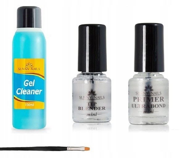 ➖ Очиститель 100мл -Очиститель - незаменимая жидкость для обезжиривания ногтевой пластины перед нанесением геля или акрила, а также для смывки гелевой массы (дисперсионного слоя) после затвердевания в УФ-лампе. Очень сильный с ароматом грейпфрута ➖ Бескислотный праймер Sunny Nails Primer Ultrabond 6мл ➖ Tip Blender 6мл - жидкость с эффектом жидкой пилочки. Смягчает край кончика ногтя, что позволяет легче и быстрее подпиливать его поверхность.➖ Гелевая кисть