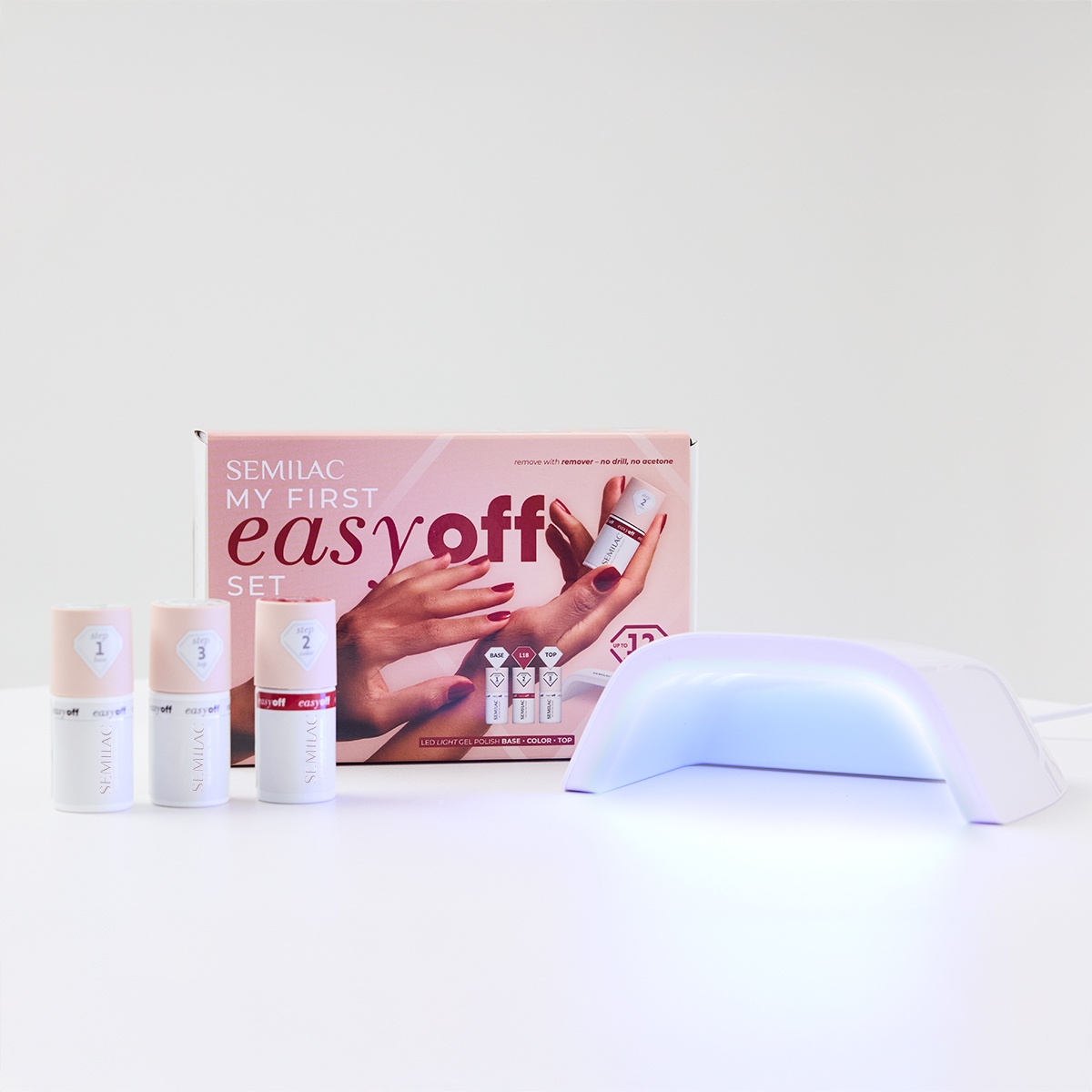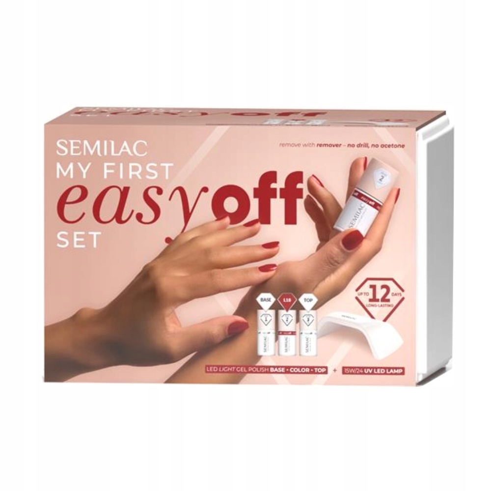Вы начинаете свое приключение с перманентного маникюра? Вы мечтаете о красивом блеске, но боитесь повредить ногти при снятии лака? Набор My FirstEasy Off Set — идеальное решение для вас. Все, что вам нужно для начала укладки, находится в одной коробке — ни фрезера, ни пилки, ни ацетона. А что насчет удаления? Легко и быстро — с помощью средства для удаления Semilac без ацетона.