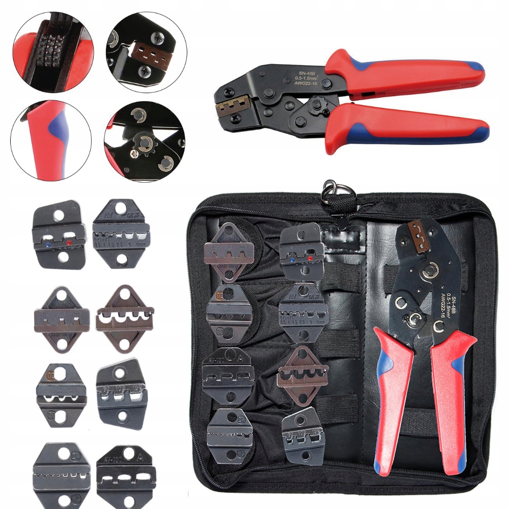 Удобная и быстрая замена интерфейса давления: все, что вам нужно, это отвертка. Вы можете быстро и легко заменить челюсти, нажать на нагрузочный штифт и легко заменить форму. Все инструменты и аксессуары упакованы в прочную сумку для инструментов, которую удобно переносить и транспортировать.