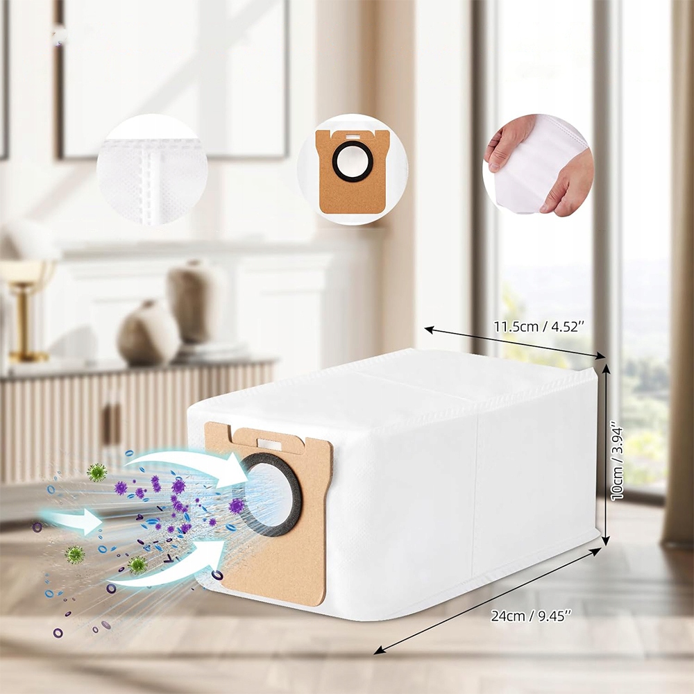 - Мешок для пыли состоит из двух слоев волокна и нетканого материала, который эффективно улавливает 99% пыли, волос и загрязнений.