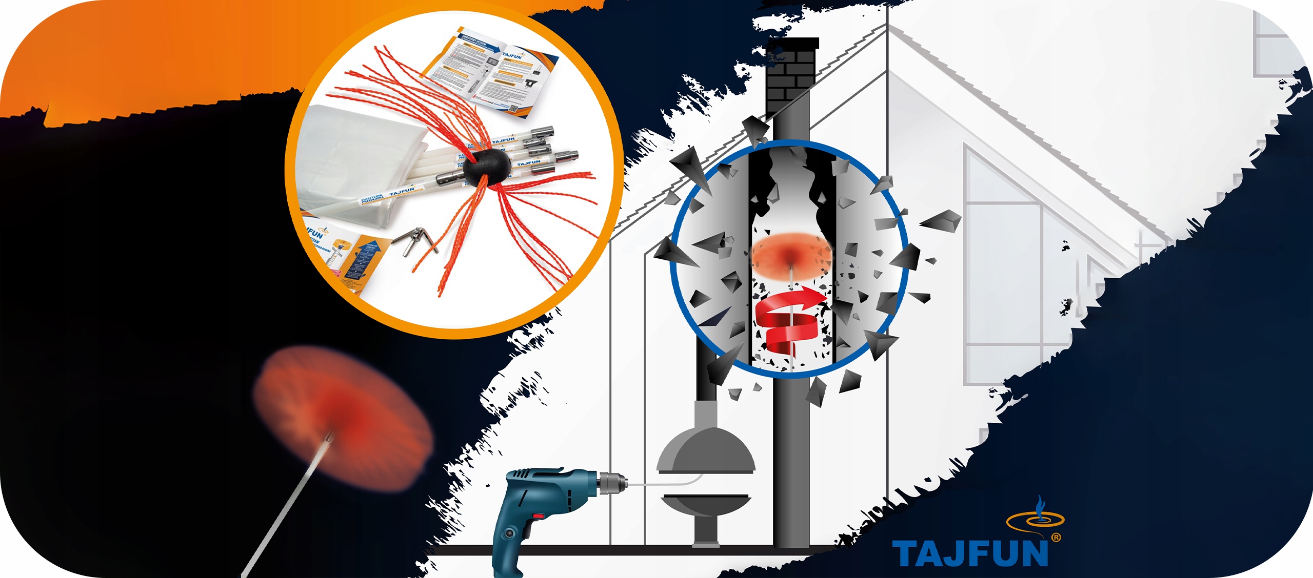 TAJFUN - Набор для чистки дымохода 7м ДРЕЛЬ + БЕСПЛАТНО