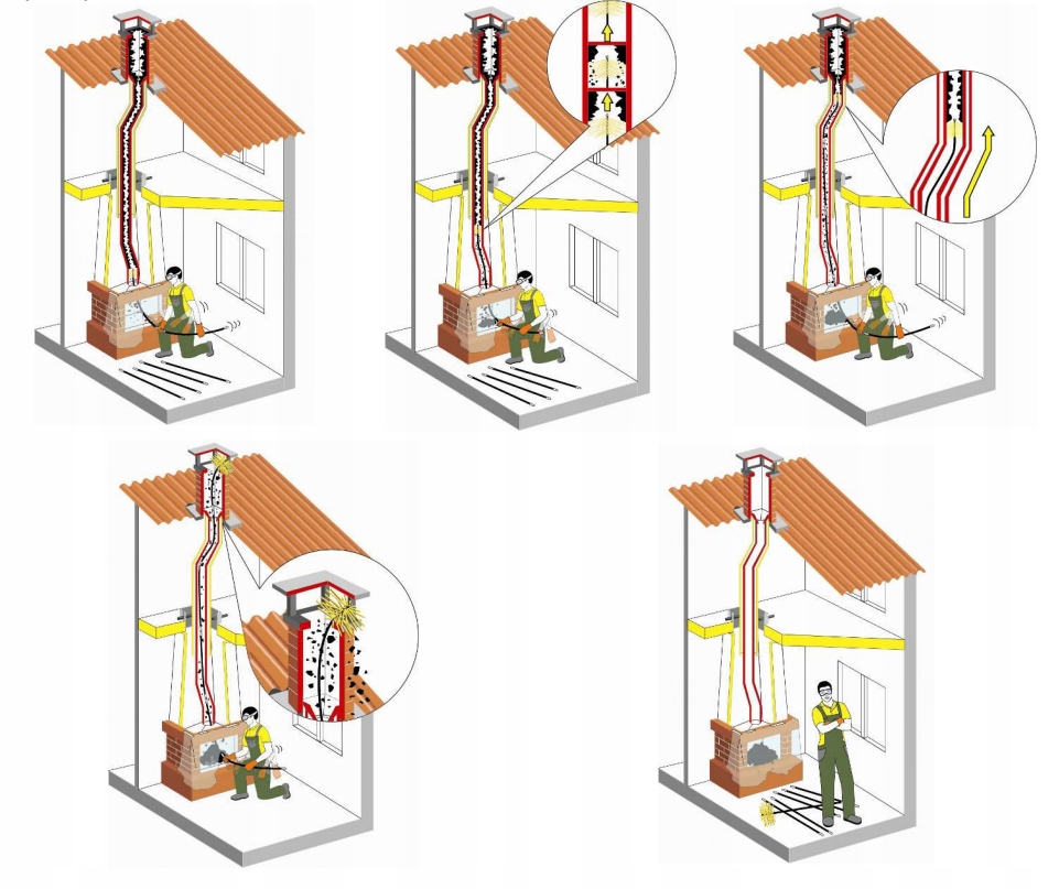 Для комфортной чистки дымохода данным комплектом необходимая высота от пола до прочистки (смотрового окна) — 50см.