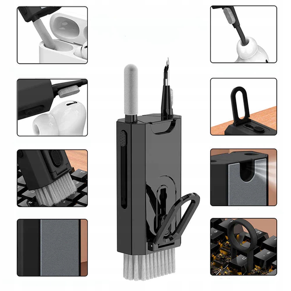 Многофункциональный набор для очистки экрана клавиатуры наушников Alogy Cleaner Set 8in1 для телефонов, планшетов, ноутбуков и компьютеров, который прекрасно удалит всю внешнюю грязь, пыль и жирные следы.