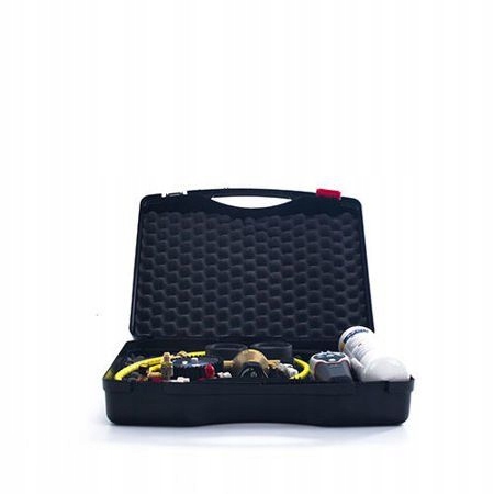 В комплект входят: • Полипропиленовый кейс • Регулятор давления на 5-литровый баллон • Трехходовой манометр со шлангом и клапаном • Желтый шланг 1500 мм • Водородный баллон (азотно-водородная смесь) – 1 литр • Редуктор для баллон емкостью 1 л • Детектор утечки водорода