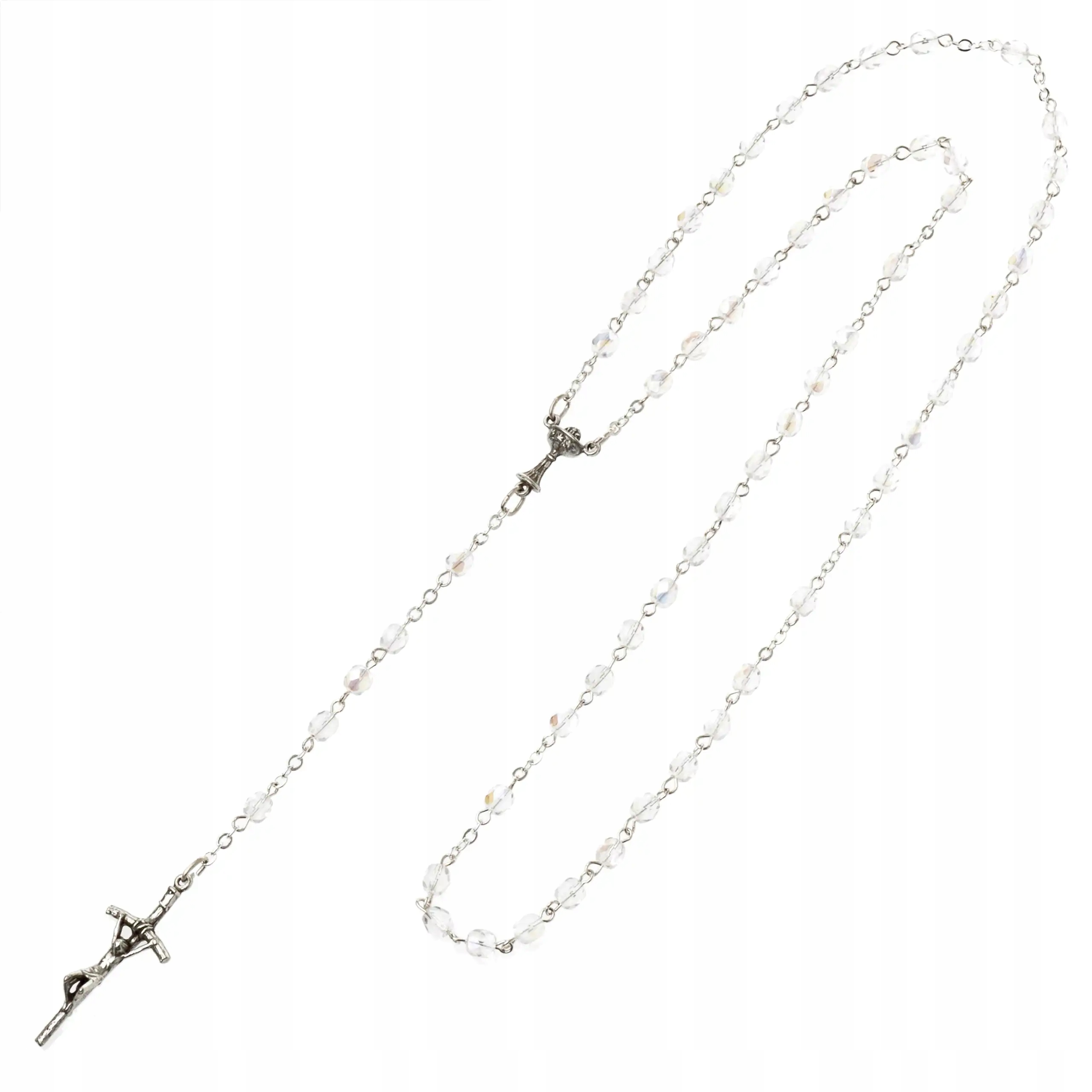 - Блестящие четки для первого причастия с прозрачными бусинами, красиво преломляющими свет.