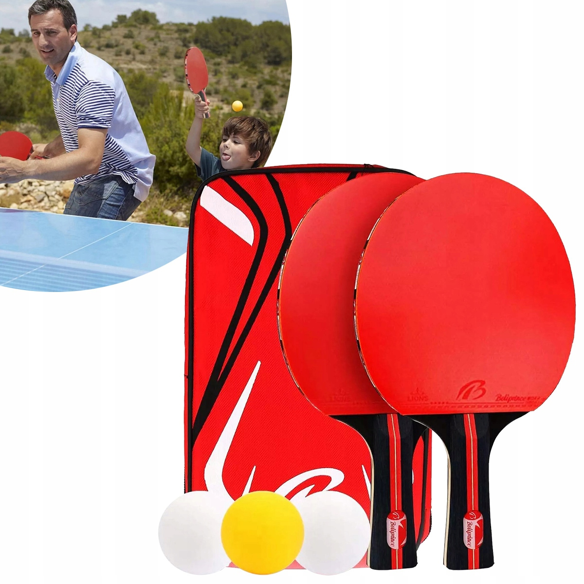 【Набор ракеток для настольного тенниса】 В комплект для настольного тенниса входят 2 ракетки премиум-класса (Shake-Hand Grip), 3 мяча для настольного тенниса (2 белых + 1 желтый) и 1 удобная сумка премиум-класса, так что вы можете взять его с собой куда угодно! Вы можете легко играть в настольный теннис на открытом воздухе или в помещении. Набор ракеток для настольного тенниса также станет отличным подарком, идеальным подарком на Рождество/день рождения/выпускной/День матери/День отца и в офис.