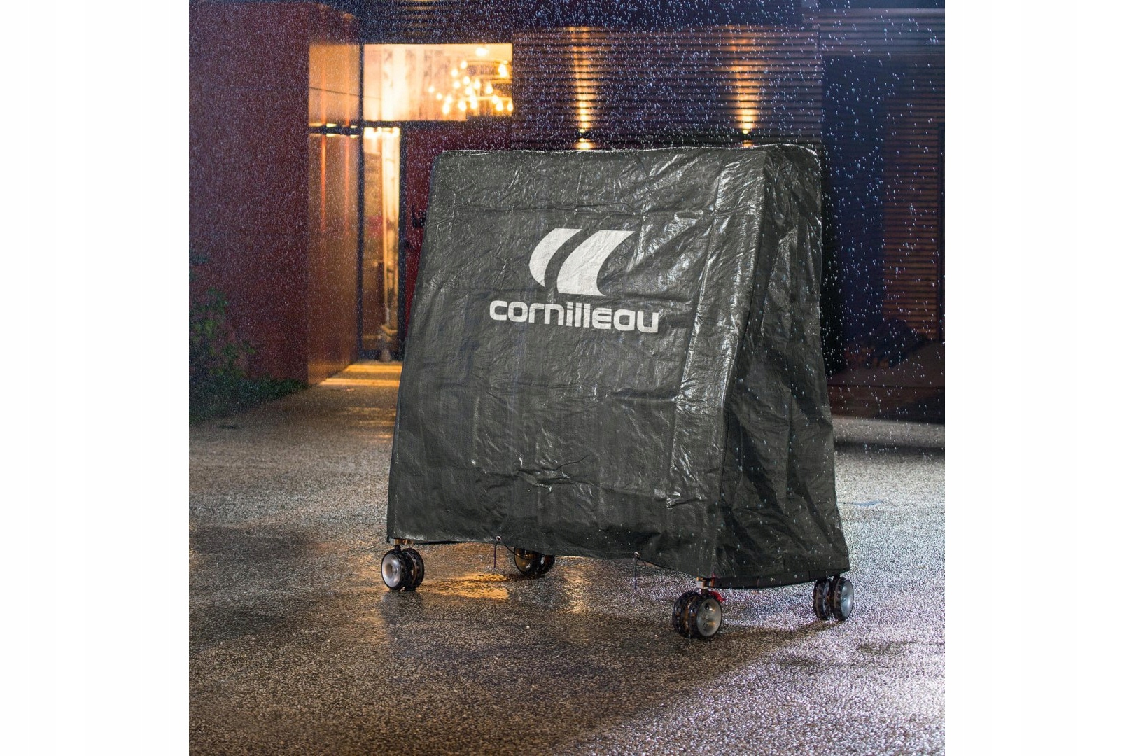 Покрытие стола Cornilleau обеспечивает защиту от грязи, пыли, ультрафиолетового излучения, вода и неблагоприятные погодные условия. Он легкий и изготовлен из прочного полиэтилена. Он оснащен специальной системой ручек, благодаря чему он не соскальзывает со стола даже при сильном ветре.