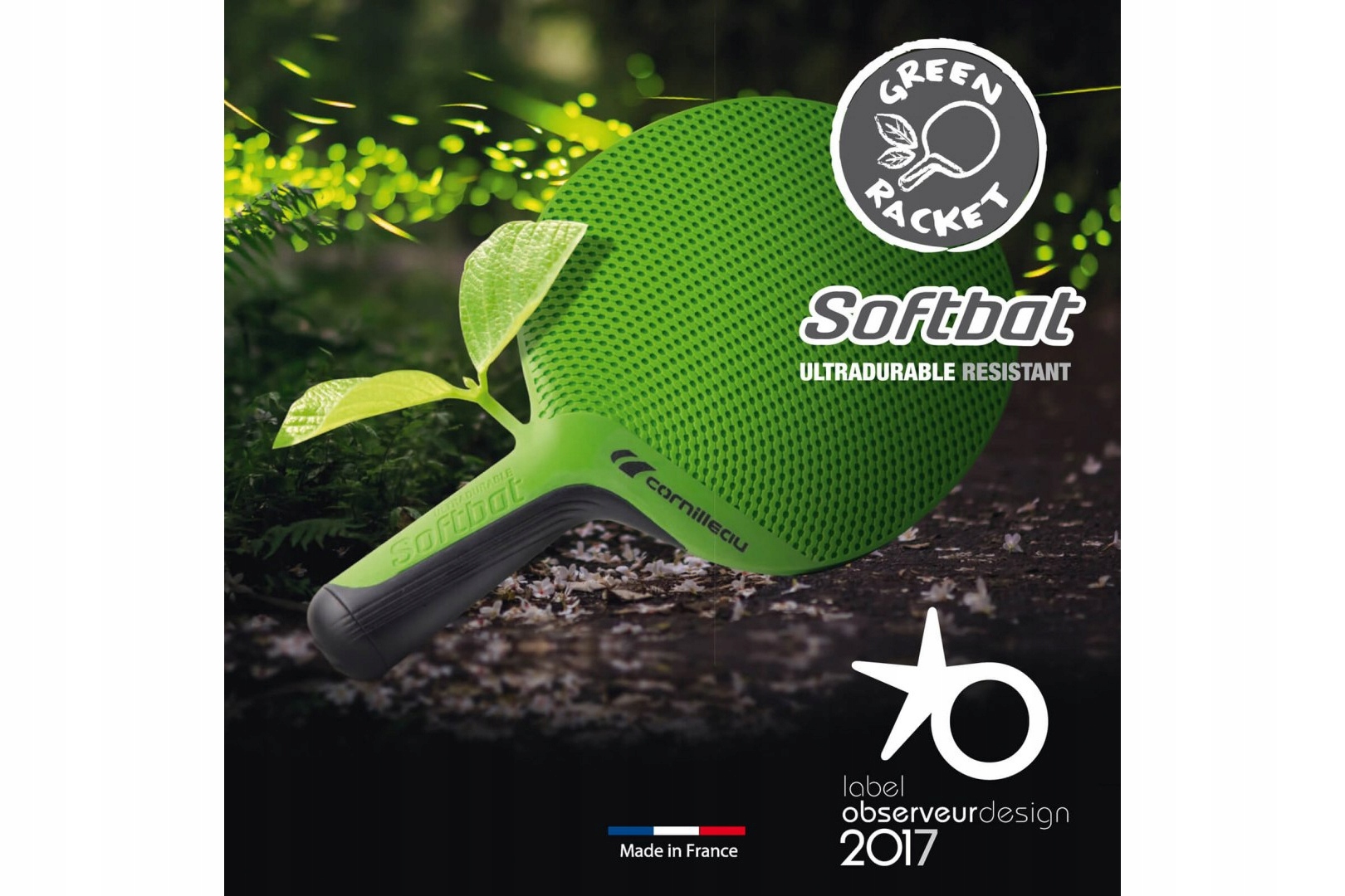 Ракетка идеальна для игроков-новичков, а также для развлекательных матчей с друзьями и семьей, а также для тренировок. Материалы, используемые для производства ракеток SOFTBAT, получены в результате 100% переработки и переработки хлопчатобумажных и полиэфирных тканей из одежды. В процессе принял участие французский бренд одежды ARMOR LUX, предоставивший одежду из своих старых коллекций. Благодаря этому ракетка SOFTBAT является первой ЭКО-ракеткой на рынке!