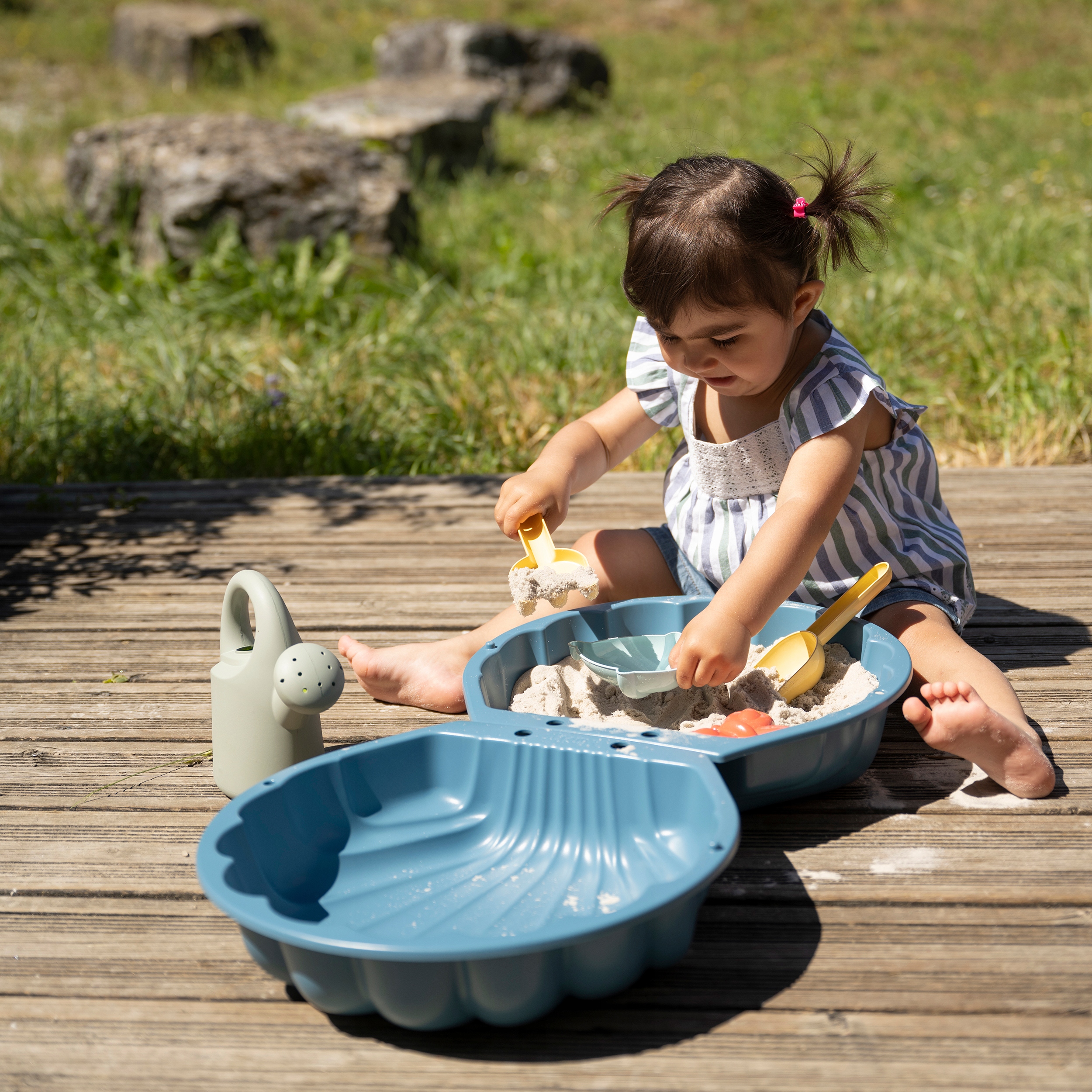 Песочница с крышкой и аксессуарами от бренда SMOBY – идеальная игрушка для сада или для игры дома, на балконе или террасе. Благодаря крышке мы можем оставить песочницу на улице и не беспокоиться о погодных условиях снаружи. Однако песочницу также можно использовать как яму для сухих шариков. В жаркие дни вместо песка можно налить ребенку и воды.